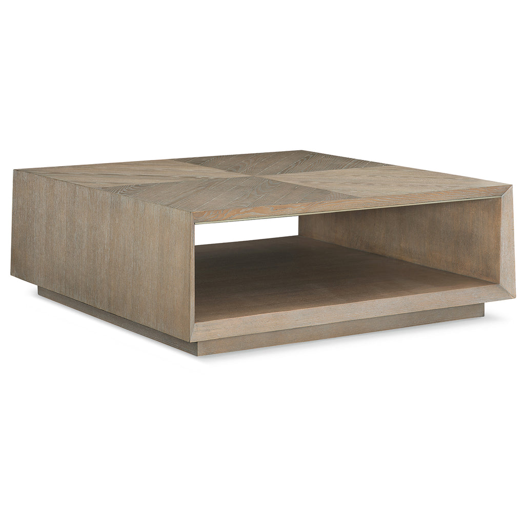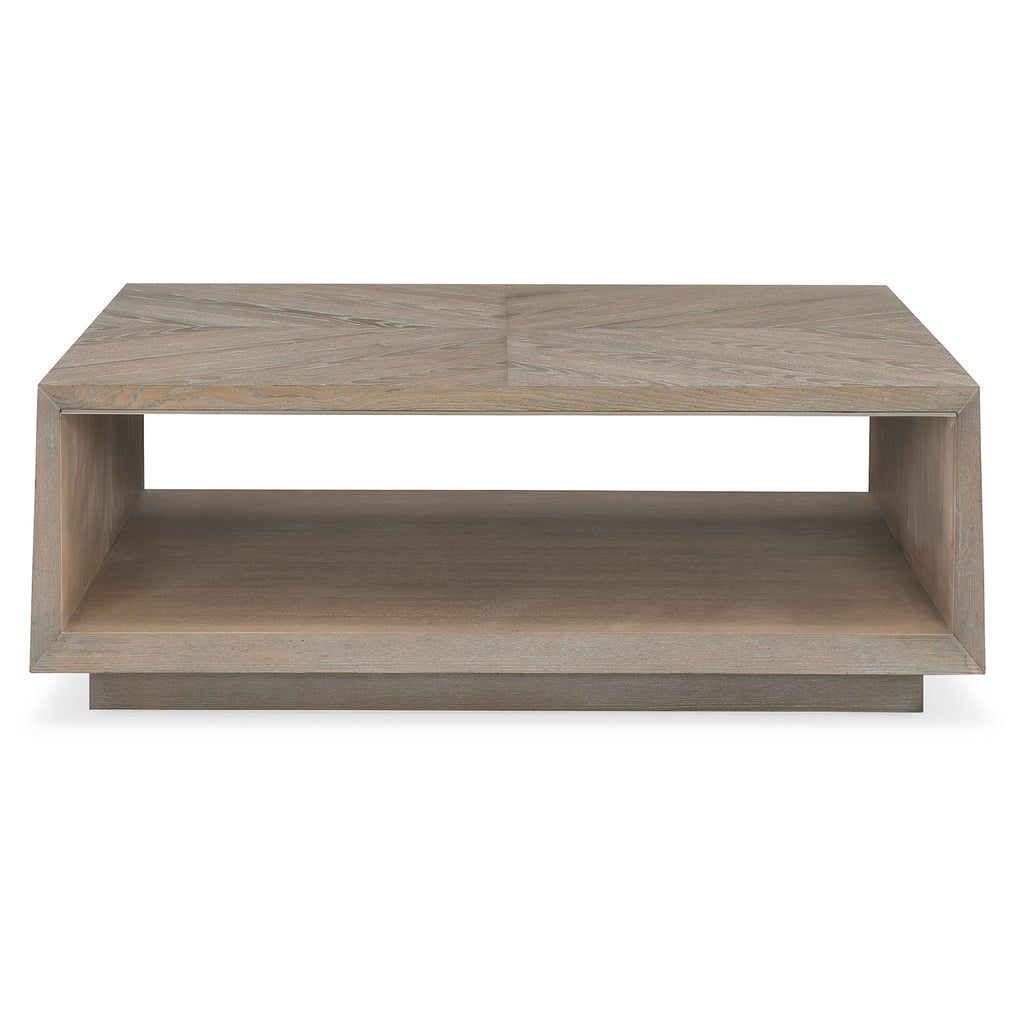 As the center of your conversation area, the Boxcar cocktail table lends authentic warmth and character. Its clean geometric lines are brought to life with the organic beauty of Ash Driftwood veneers formed in an artistic alternating pattern across the tabletop. Designed with an open storage area, this cocktail table’s timeless form is bolstered by thoughtful functionality—creating just the place to stow magazines or a favorite knitted throw. Highlights of a Sundance Gold finish peek through in metal accents that add another layer of luxe.