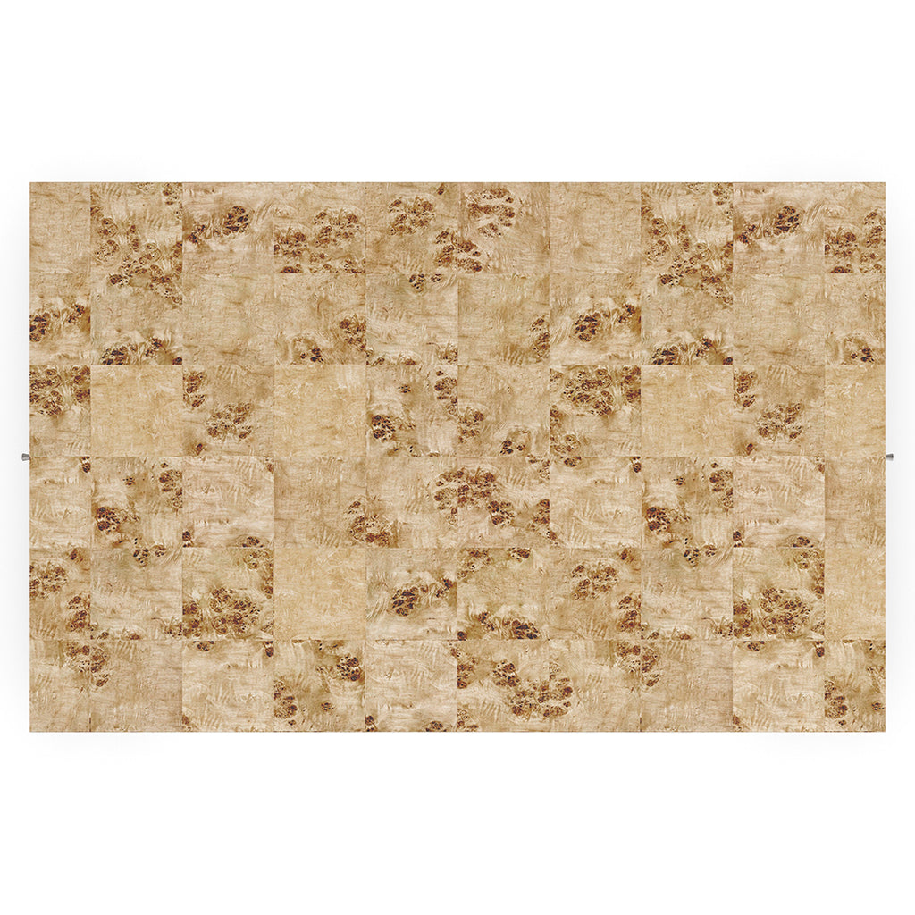• Pull out shelf on each end with surface finished in Mappa Burl.