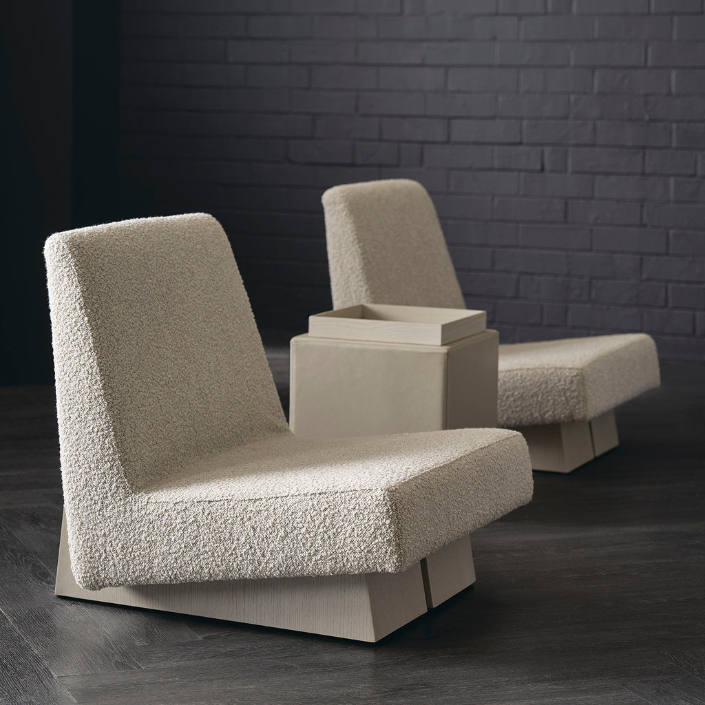 A harmonious fusion of form and texture, Caracole Indi makes a bold statement from any angle. Artfully defined by clean lines and a split detail on the oak wood base, this versatile accent chair introduces a laid back yet sophisticated aesthetic in a soft boucle fabric. A standout on its own; even more dramatic in pairs.