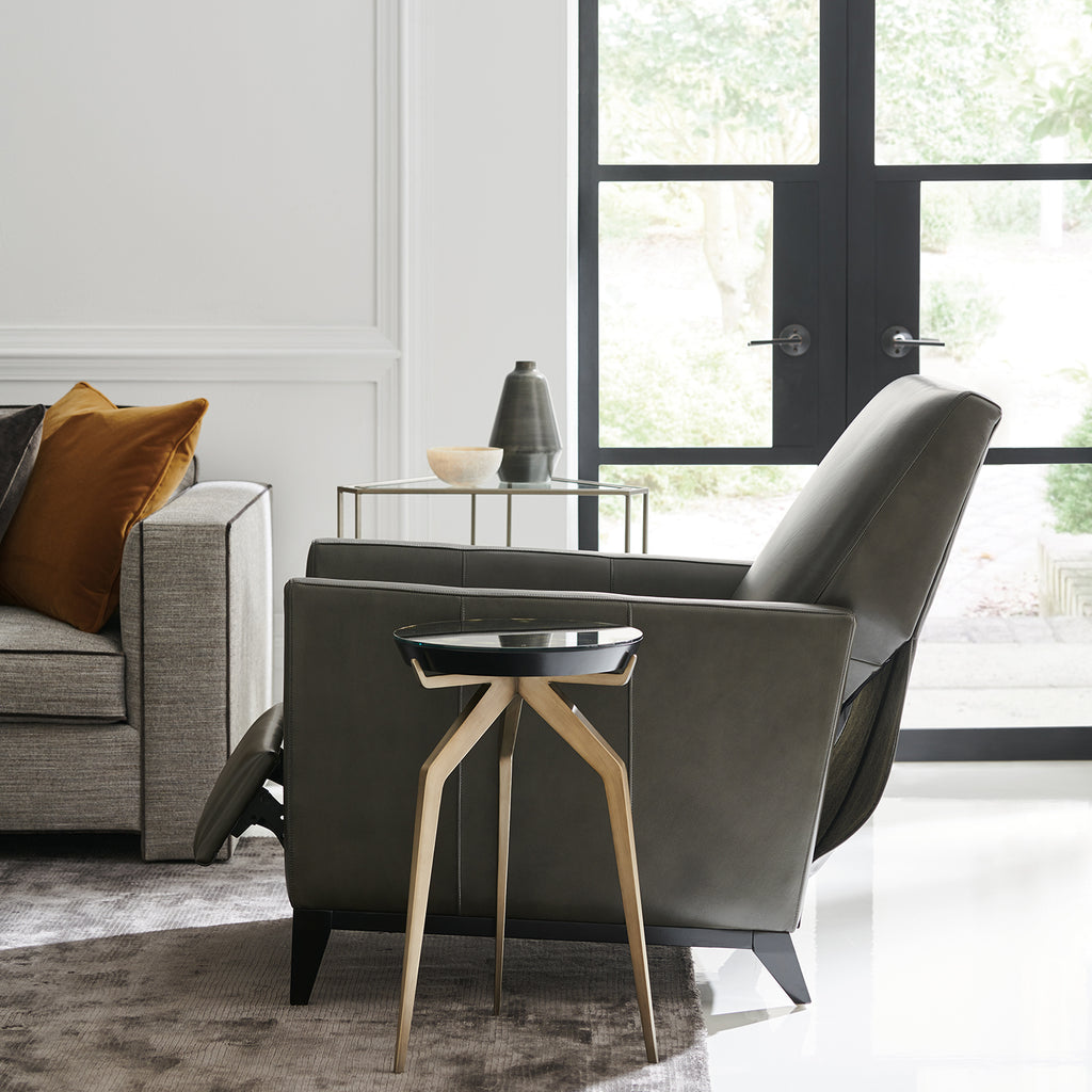 Who said recliners aren’t stylish? This is reclining, reimagined. Lean On Me offers a simple, minimal silhouette in Almost Black leather that feels sleek and fashion-forward. Its clean lines and straightforward personality conceal a push-back recliner offering cradling comfort. For those who want to put their feet up by the fireplace but have the look of a stylish chair—there’s nothing finer.