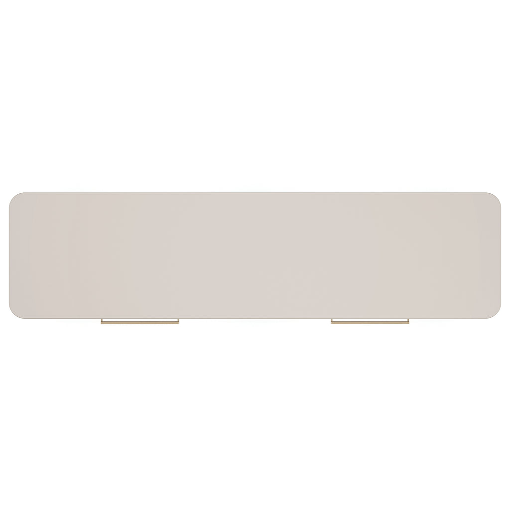 This streamlined cabinet introduces a modern-yet-elegant silhouette, crafted in Birch wood with reeded details and a Matte Pearl finish. Vinyl-wrapped door fronts with linear hardware lend a contemporary element, complemented by glass doors framed in a Whisper of Gold. Its lit interior offers generous storage with adjustable glass shelves and a touch dimmer switch. Beautifully blends in with entryways, living and dining interiors.