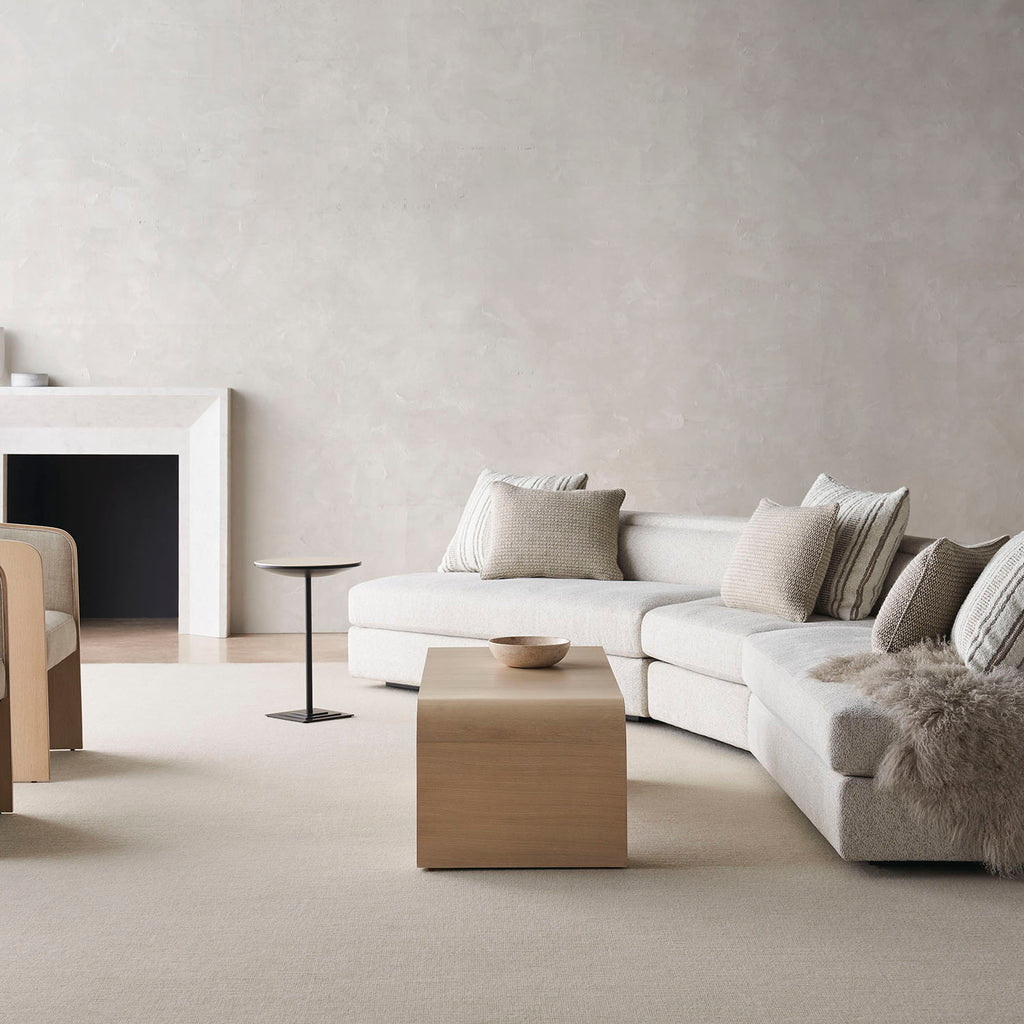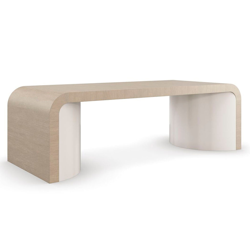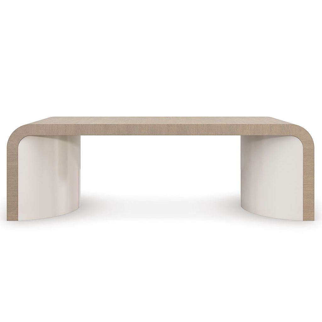 A calming rendition of organic fluidity, this cocktail table is defined by the beauty of Sun Drenched Oak and an ample top surface that gracefully waterfalls over either side. Its curved base adds movement and a tactile element in an innovative Textured Adobe finish. Pair with our Caracole Movement end table to make a fresh statement and soften clean modern lines.