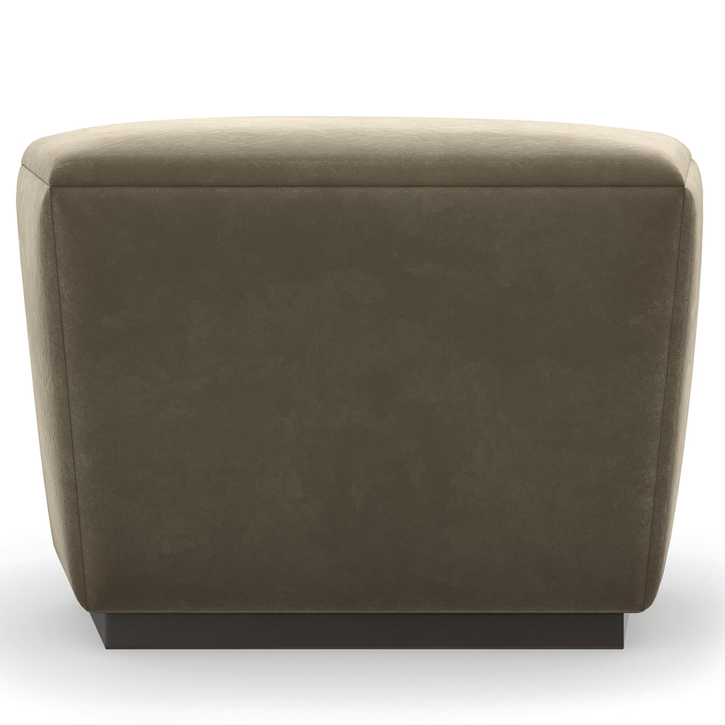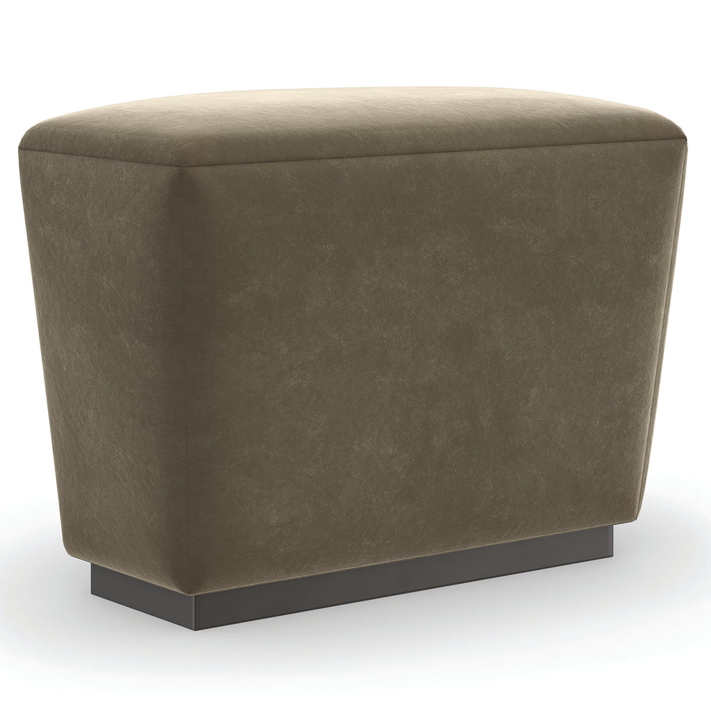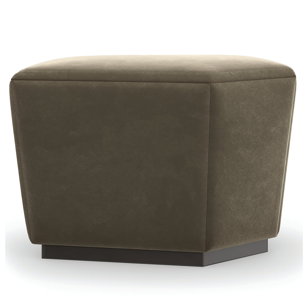 An artful integration of form and function, this faceted storage ottoman is named for one of the Gemini twins in Greco-Roman mythology. Upholstered in a luxuriously soft mohair fabric, its sculptural silhouette is balanced on a Dark Chocolate plinth base. Style on its own in a living room or conversation nook, or pair with Castor and Gemini, our faceted spot table, for chic end-of-bed storage and plush seating option.