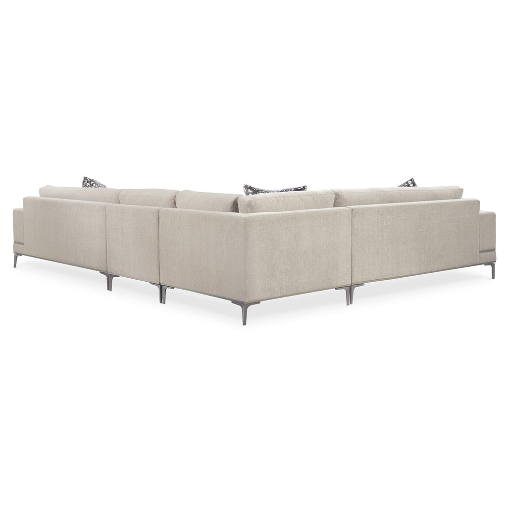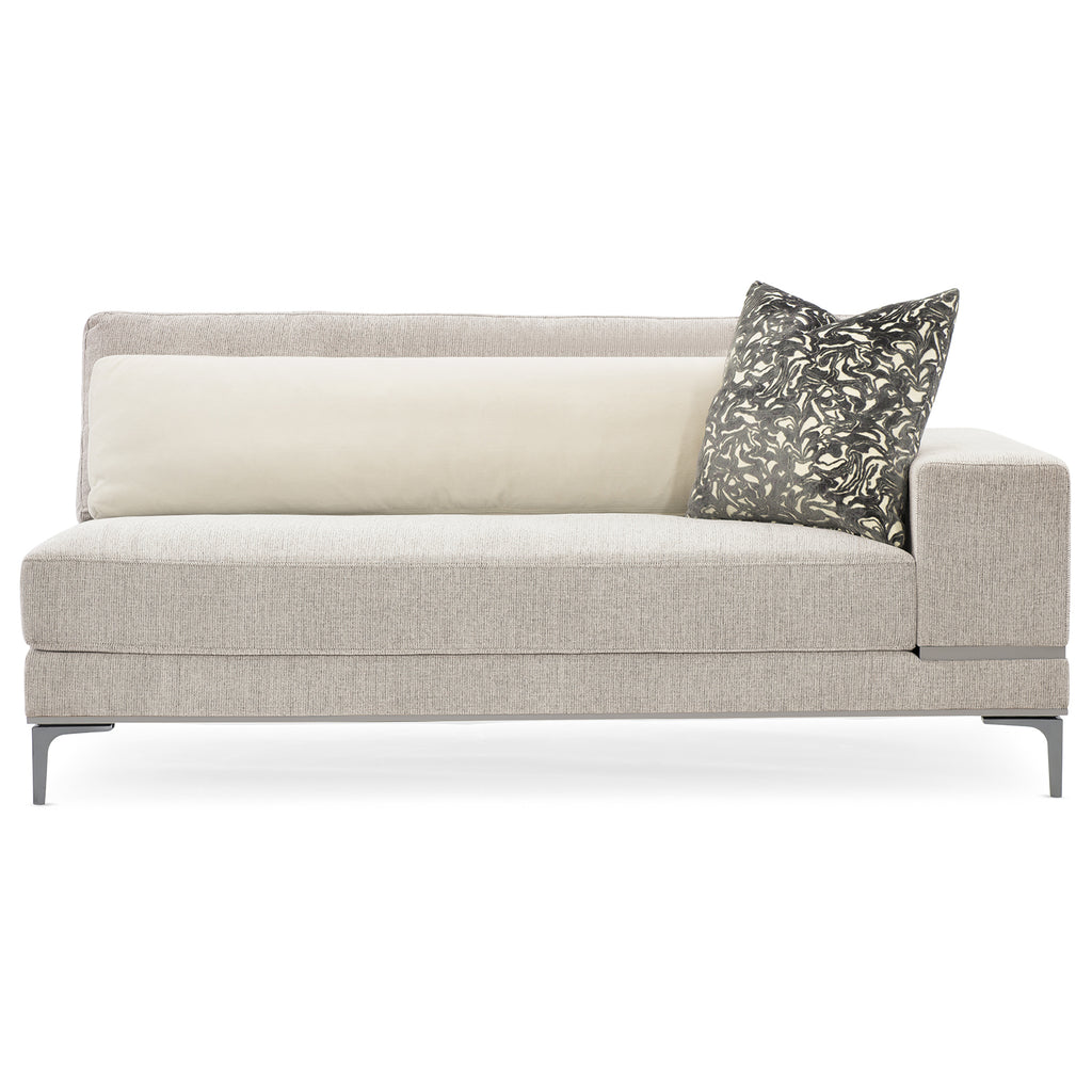The clean lines and smart angles of a Repetition modular sofa create a stylish sectional solution for modern seating. Long uninterrupted planes of finely tailored upholstered cushions create a sumptuous retreat with true simplicity of form. Repetition’s frame is finished in London Fog while its metal legs wear Zinc Oxide—adding additional layers of luxe to its refined palette. Ultimately configurable, this stunning seating solution can be arranged to fit your space while reflecting your unique design perspective.