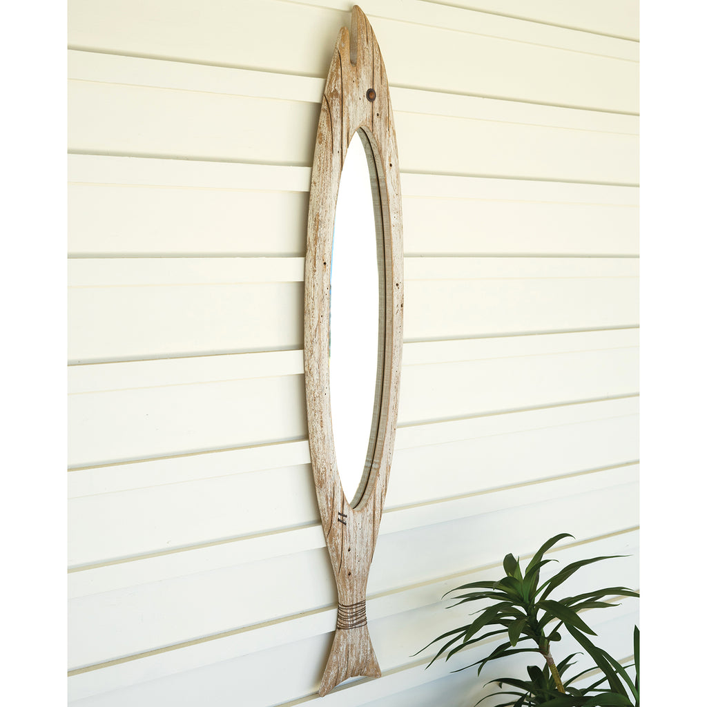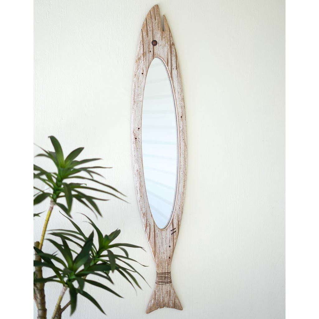 This wooden fish mirror is the perfect accent for that empty wall. Bring the beach home with you or decorate your home away from home