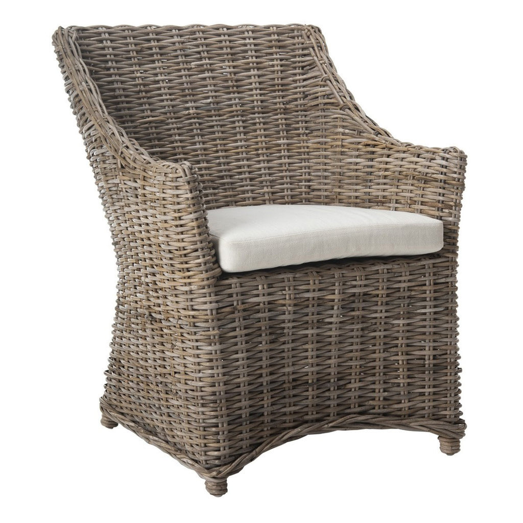 Envelope your guests in comfort and style with the transitional good looks of the woven rattan Ventura Arm Chair. Crafted of tropical kubu and mango wood with upholstered cotton seat cushion, Ventura’s brown white washed finish and ample lines are highlighted with beautiful braided detail along its back and arms.