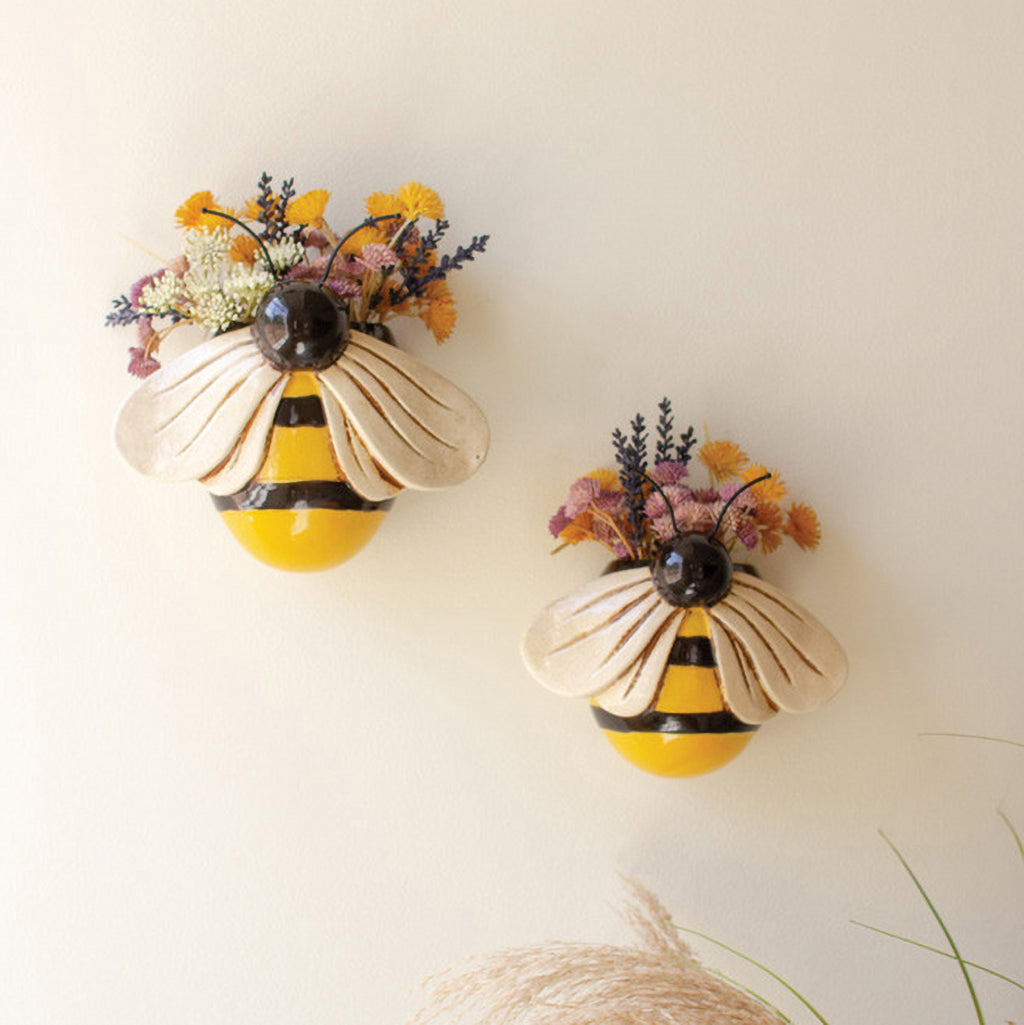 This pair of ceramic bees wall planters is all the buzz. Grow some good out of an empty wall by filling these planters with blooms and buds. You can also try them as catch-alls for small toys in a kid's room.