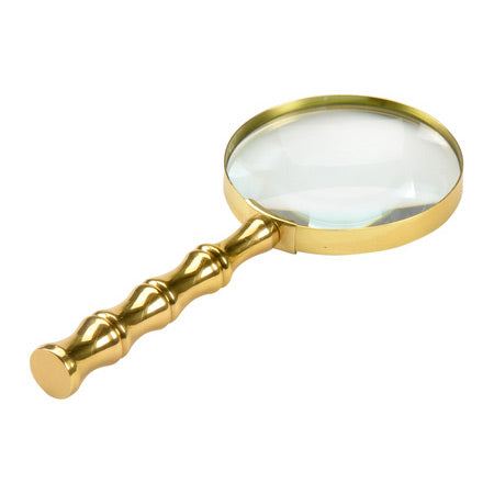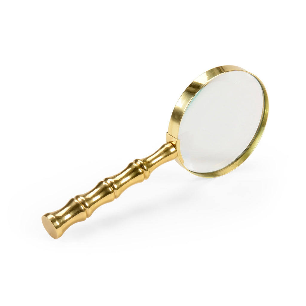Chelsea House decorates the home with this gorgeous object. A sophisticated conversational piece, place this accent atop a coffee table or mantle to catch the eye. The Chelsea House Bamboo Magnifier Glass makes a perfect desk accessory. Finished in Antique Brass with Clear magnified glass.