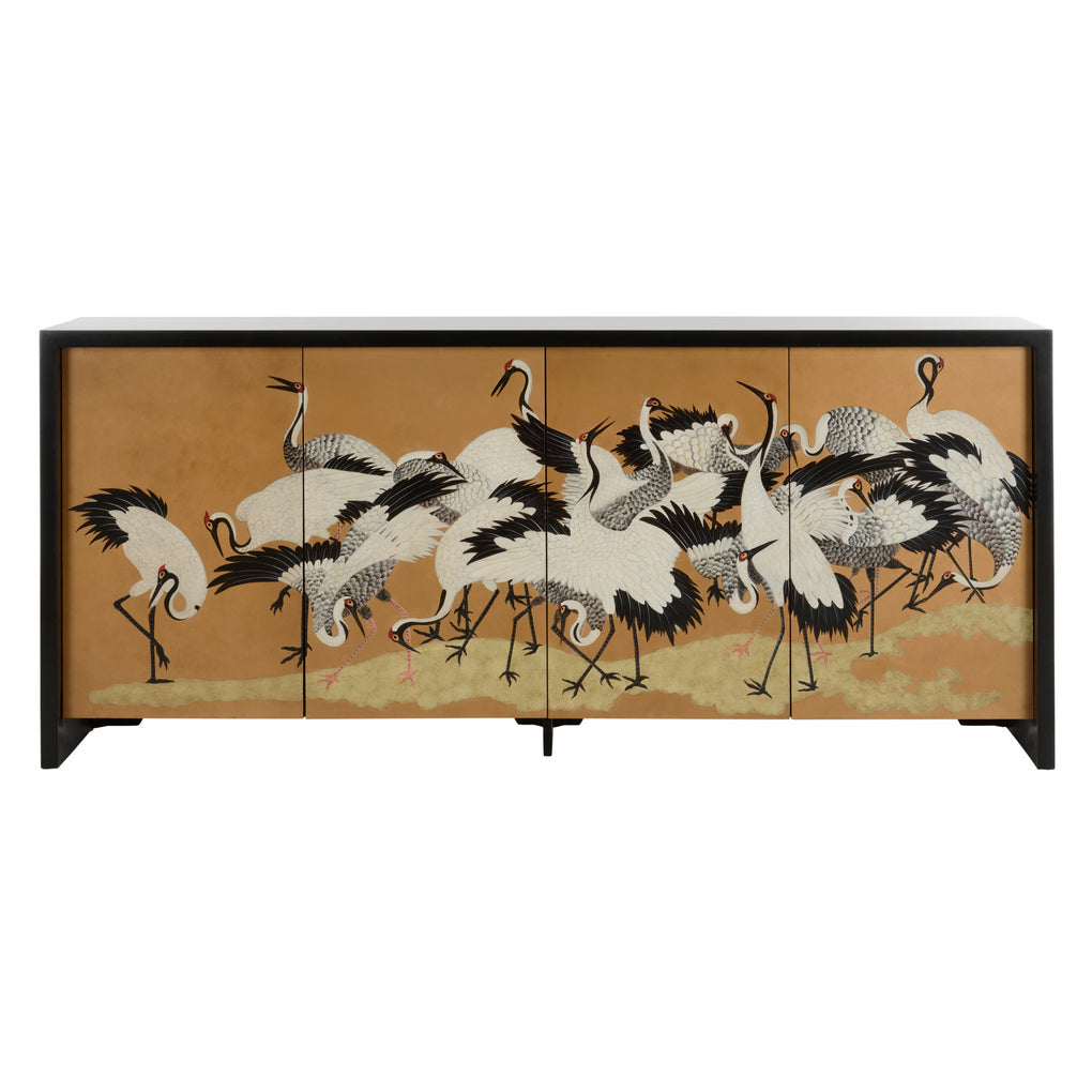 A hand painted work of art for your home, the Crane Cabinet will help a room take flight with design and hidden storage. With black finish for the sides and top and a hand painted mural on a gold background, we are sure that this will become a most loved piece in your home.