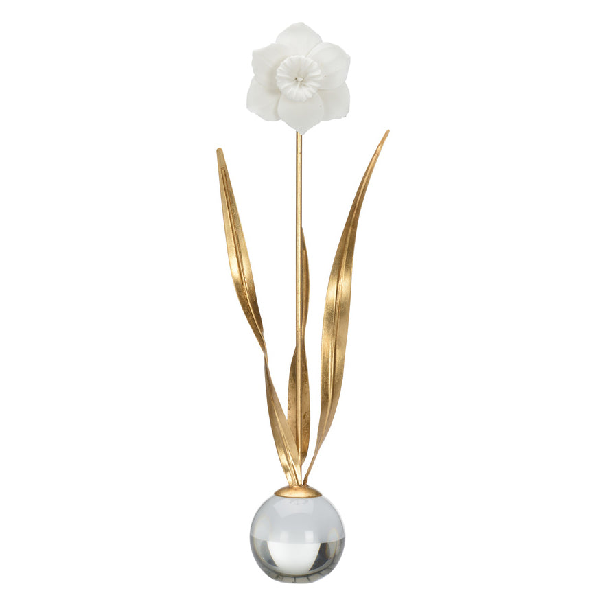 Giving the gift of flowers can last longer with the beauty of the Daffodil casted in gold and standing top a crystal base. Elegant way to show blooms all year.
