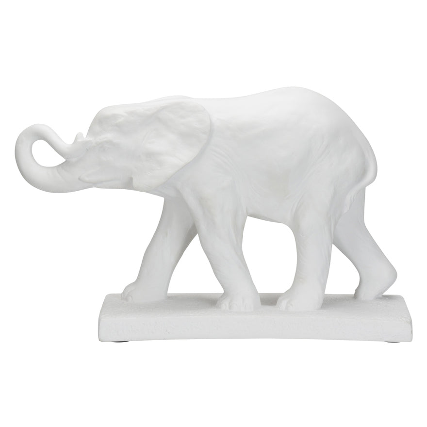 Cross paths with the Elephant in white. Made of resin material painted white. Ideal for displaying on a console or bookshelf.