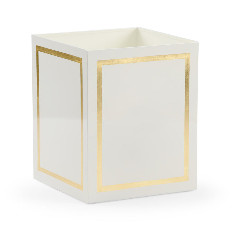 This Chelsea House wastebasket makes a stylish piece of décor next to your desk or side table. Simple and chic, this gorgeous accent delights with modern glamor. The Chelsea House Ibiza metal wastebasket in Cream with Metallic Gold trim.