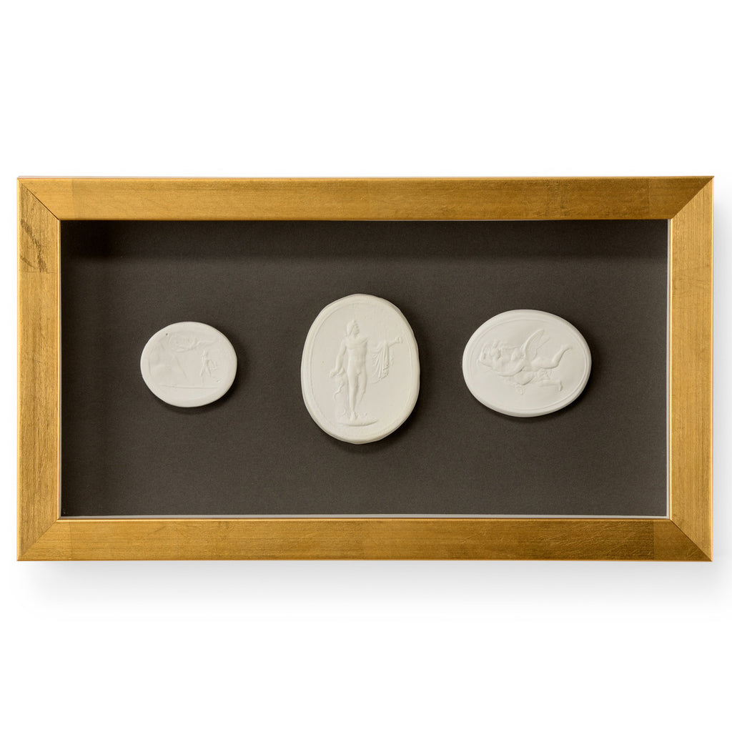This wall art from Chelsea House invites the eye to explore with bold modernity. Simple and chic, this piece delights in a living room or bedroom. The Chelsea House Intaglio II Small Shadowbox features Plaster Intaglios mounted in a contemporary Gold Leaf shadow box frame.