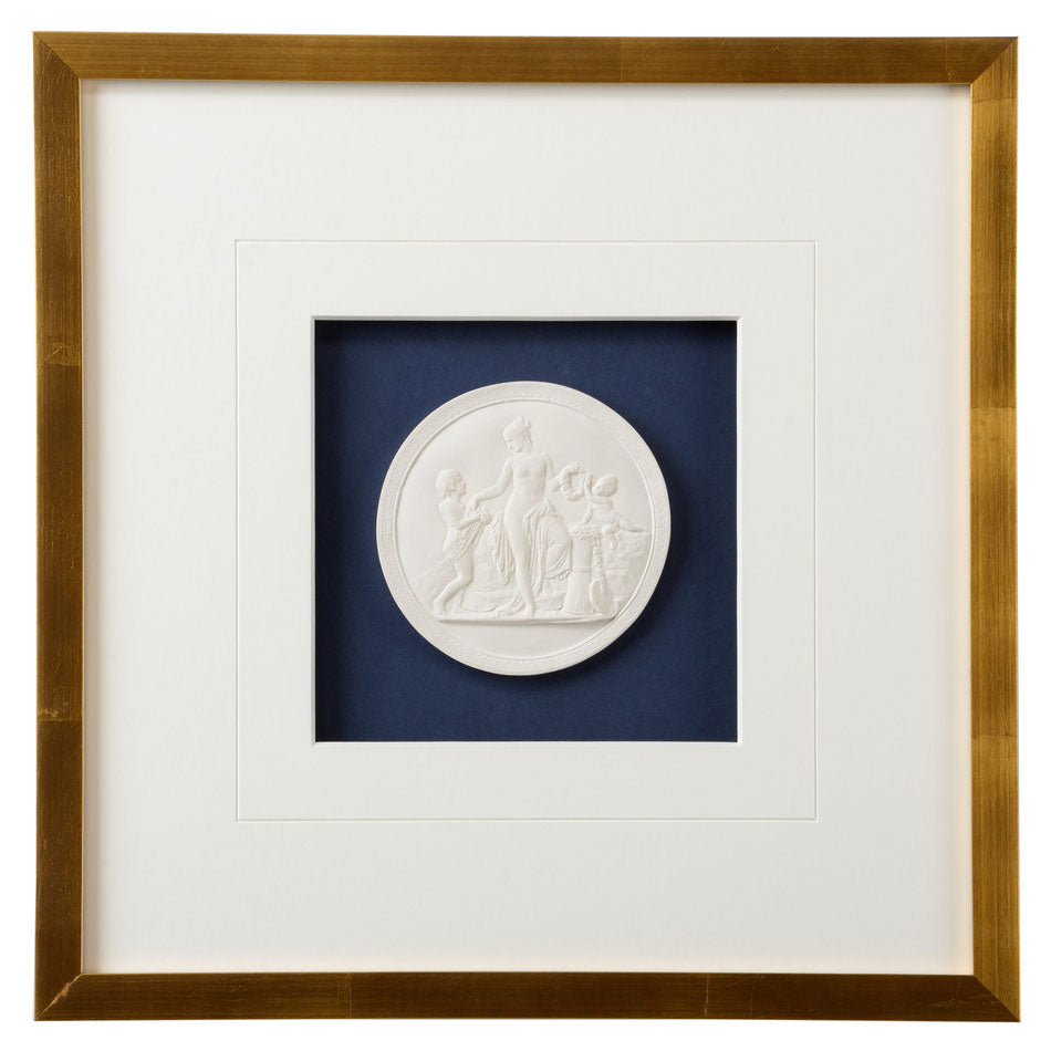 This wall art from Chelsea House invites the eye to explore with bold modernity. Simple and chic, this piece delights in a living room or bedroom. The Chelsea House Intaglios on a navy background with an 8 ply mat with v-groove in gold leaf frame, framed with glass.