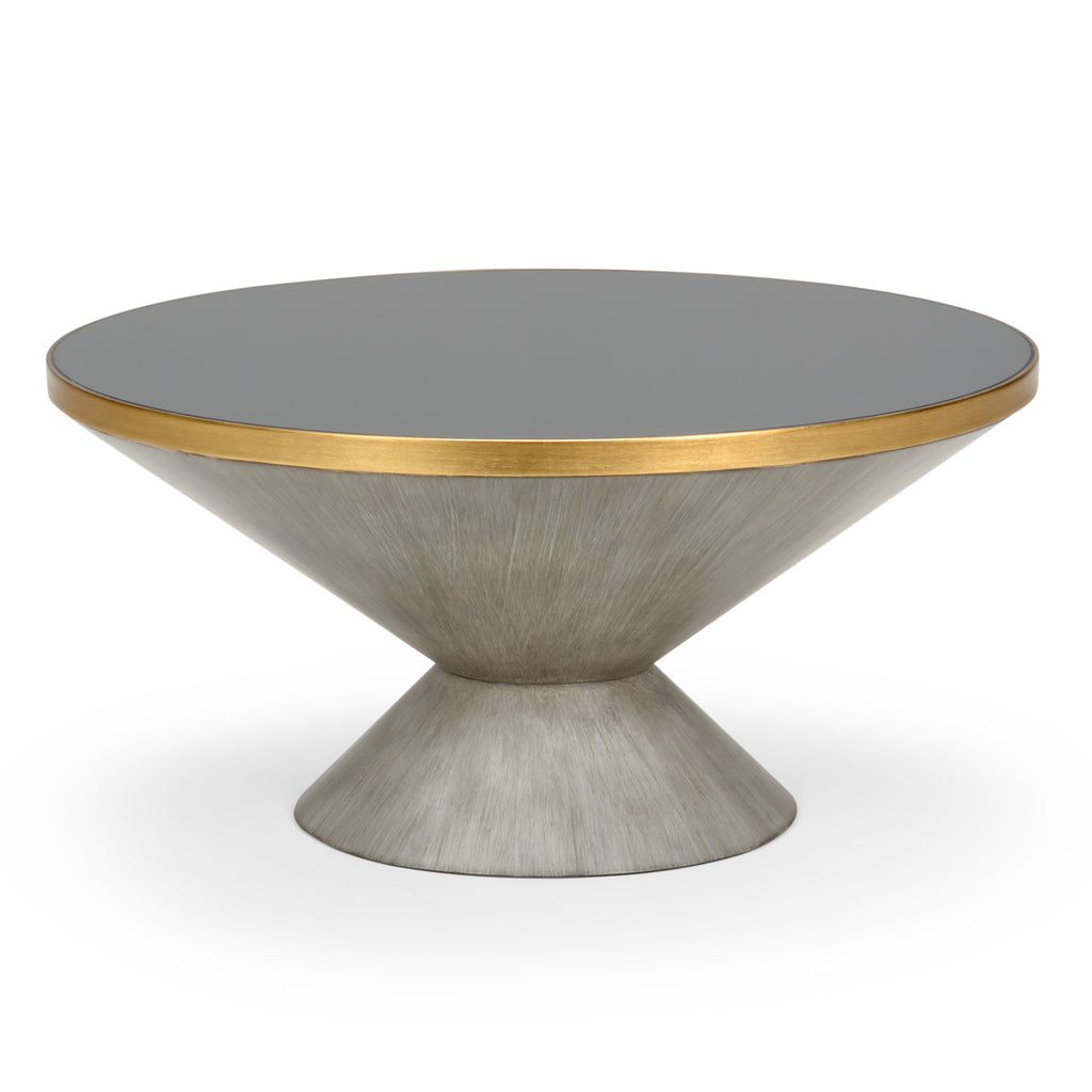 Anchor your room living room with the style of this contemporary Chelsea House coffee table. Its clean lines offer versatility to match a variety of styles for a bold statement. Antique gray wash finished wood with dark gray glass top and antique gold edging.