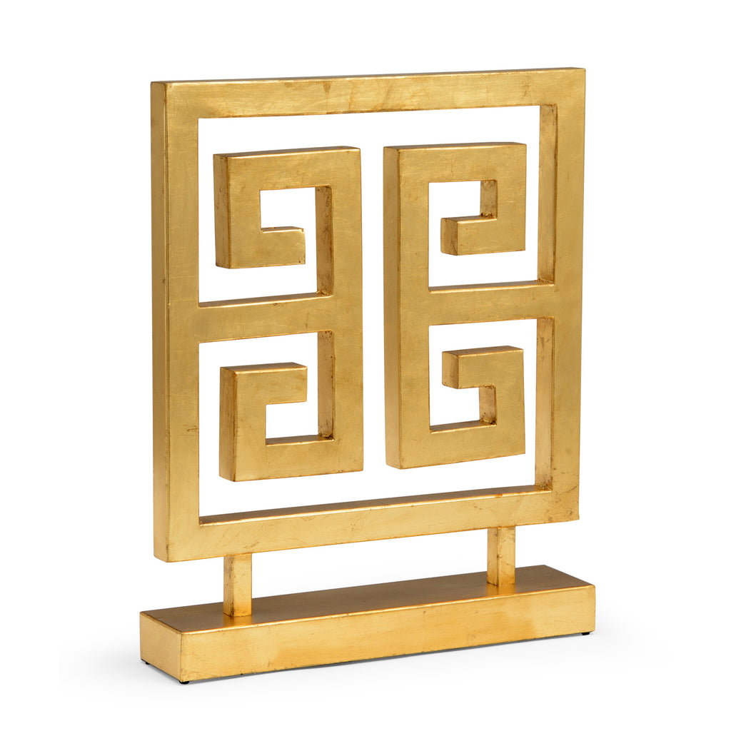 Chelsea House decorates the home with this gorgeous object. A sophisticated conversational piece, place this accent atop a coffee table or mantle to catch the eye. Antique gold leaf greek key design.