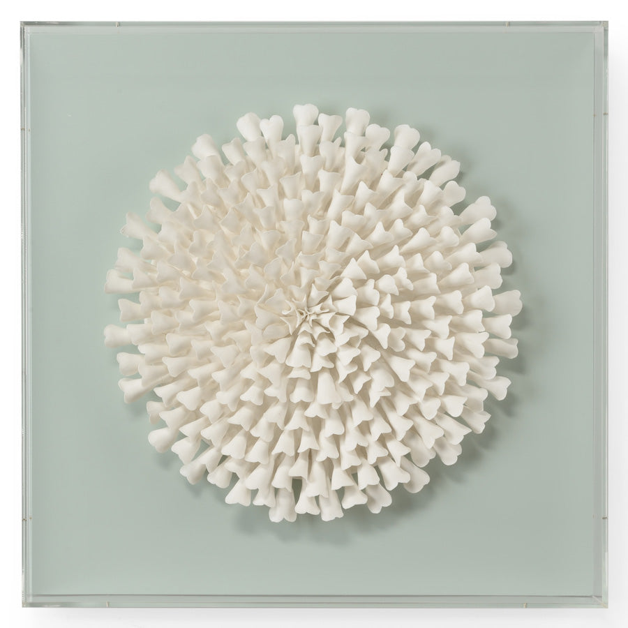 This wall art from Chelsea House invites the eye to explore with bold modernity. Simple and chic, this piece delights in a living room or bedroom. The Chelsea House Succulent Shadowbox features hand made ceramic sculpture mounted inside an Clear Acrylic frame. Available in 2 sizes of ceramic succelent.