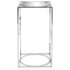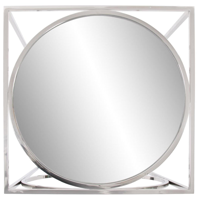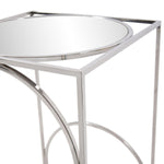 A fun play on geometry, the Circa Pedestal Table is a sleek addition to any room. Vertical lines of polished stainless steel hold circles of the same to create the base that holds a round mirrored top.