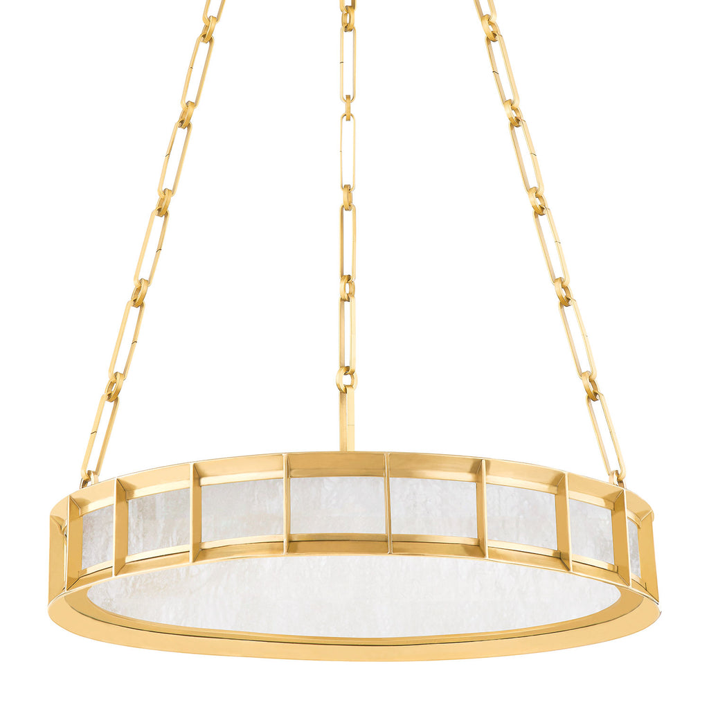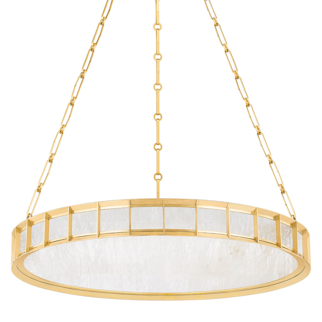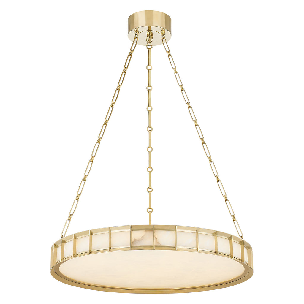 From high-drama statement pieces to subtle glamour, lighting by Corbett delivers the illuminated warmth and refinement your space needs. When your living or dining room needs a pop of drama, Corbett chandeliers offer cascading drama that brightens spaces while suspended from the ceiling. An alabaster diffuser wrapped in a Vintage Brass framework gives this design its luxurious architectural aesthetic. The straight lines of the metalwork create a modern, column-like framing that feels both nostalgic and new. An LED illuminates the alabaster from within filling the entire piece with a soft glow.