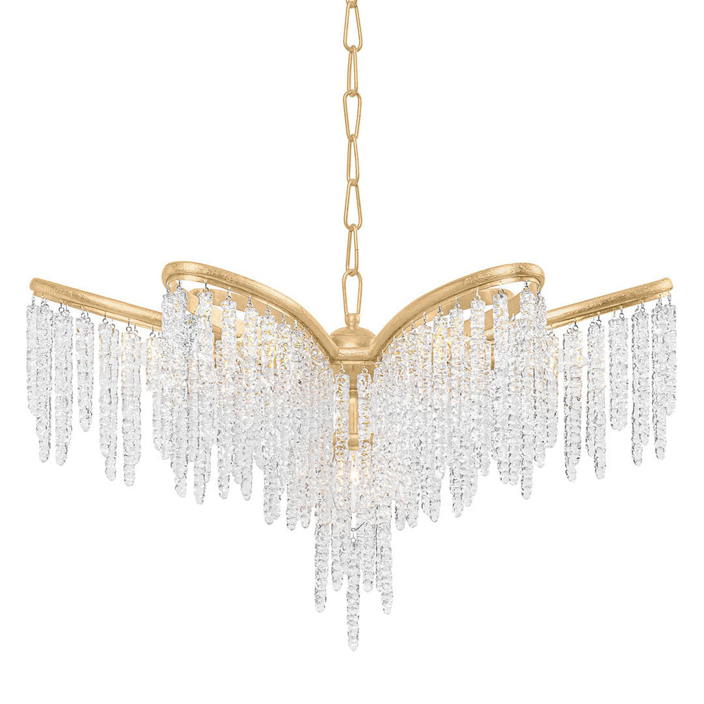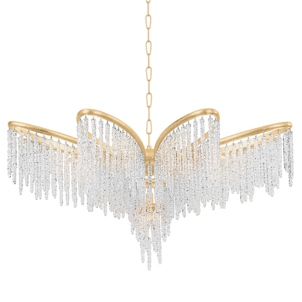 From high-drama statement pieces to subtle glamour, lighting by Corbett delivers the illuminated warmth and refinement your space needs. The Corbett Pandora chandelier takes the floral motif to a luxurious level. Glamorous, textured strands of clear crystal hang from a floral framework in Vintage Golf Leaf. When lit, the crystals put on a stunning show, filling the space with a radiant glow. Mount these gorgeous chandeliers close to the ceiling to create even more sparkle.