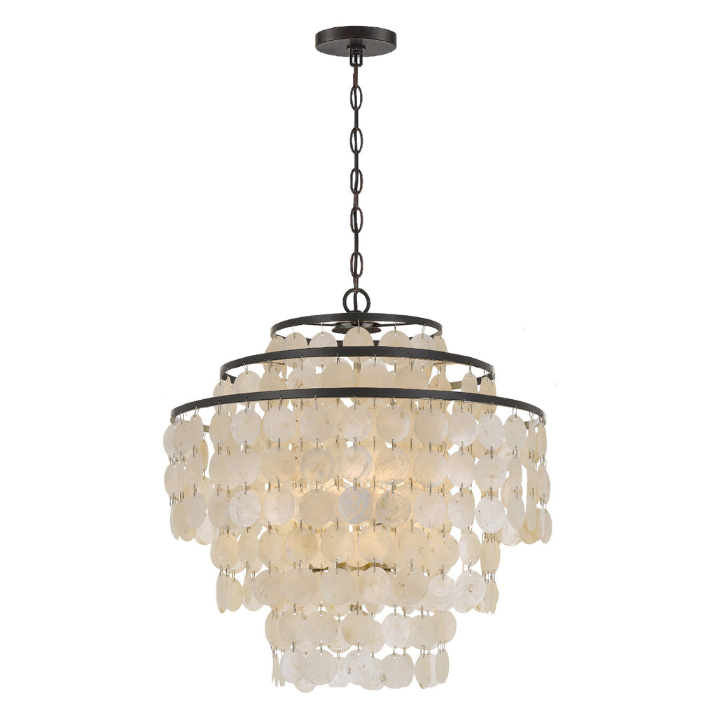 Crystorama is known for its standout lighting, which is exceptional in quality and design. From traditional all-crystal designs to transitional lighting collections, Crystorama offers styles that will match any décor and are always in fashion. The Brielle Collection is an organic mix of glamour and elegance. The hand painted metal finish offset organic, natural textured Capiz shells to form the luminous elegance of this fixture.