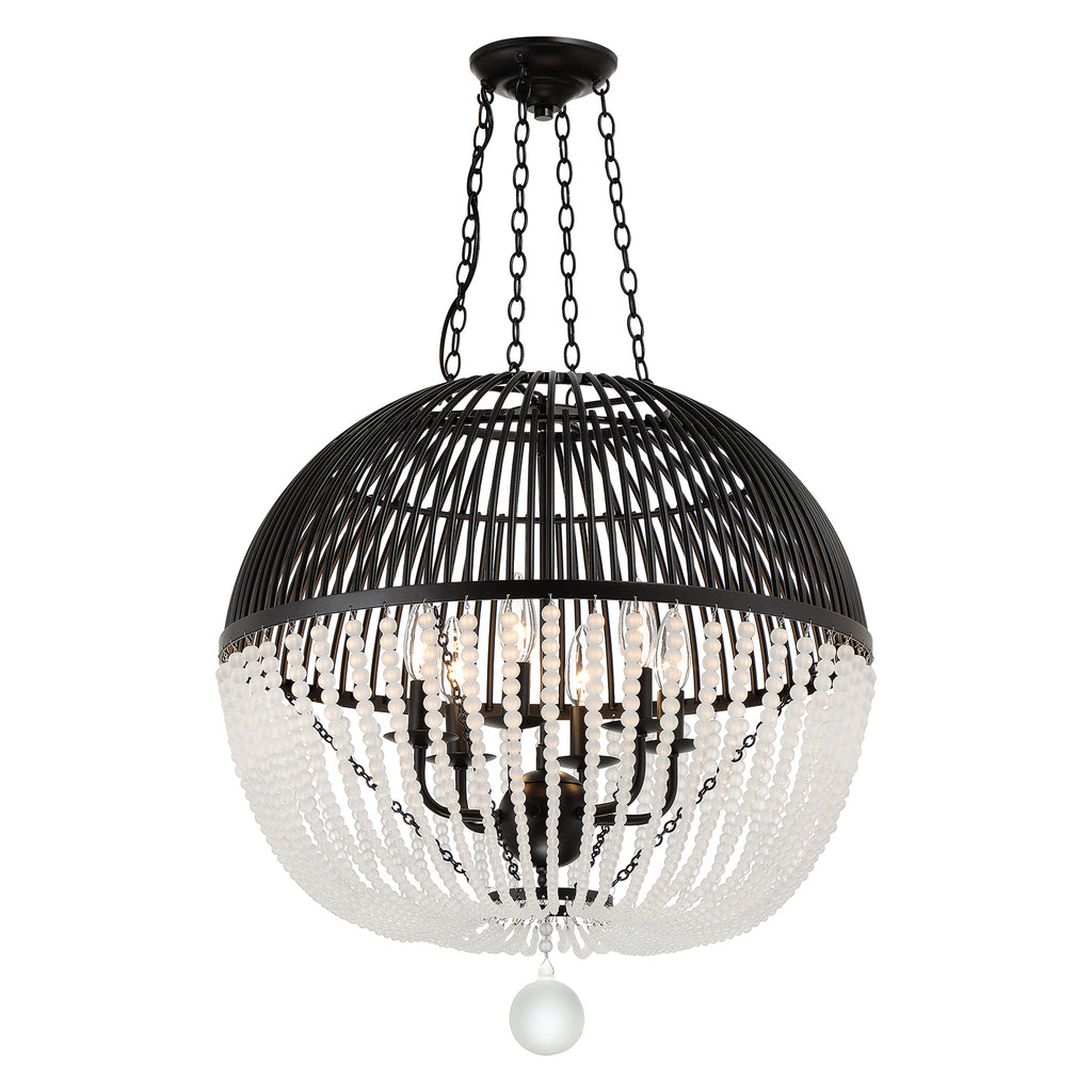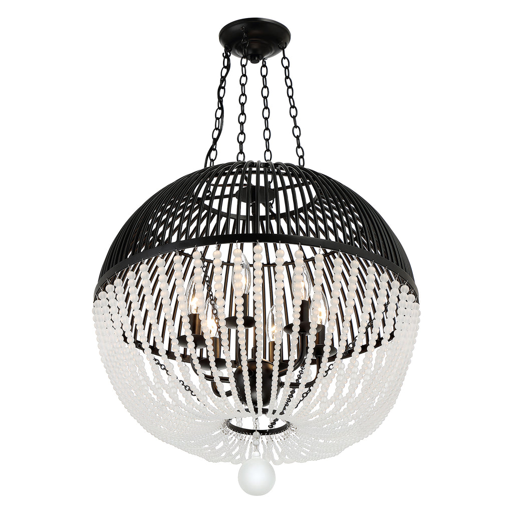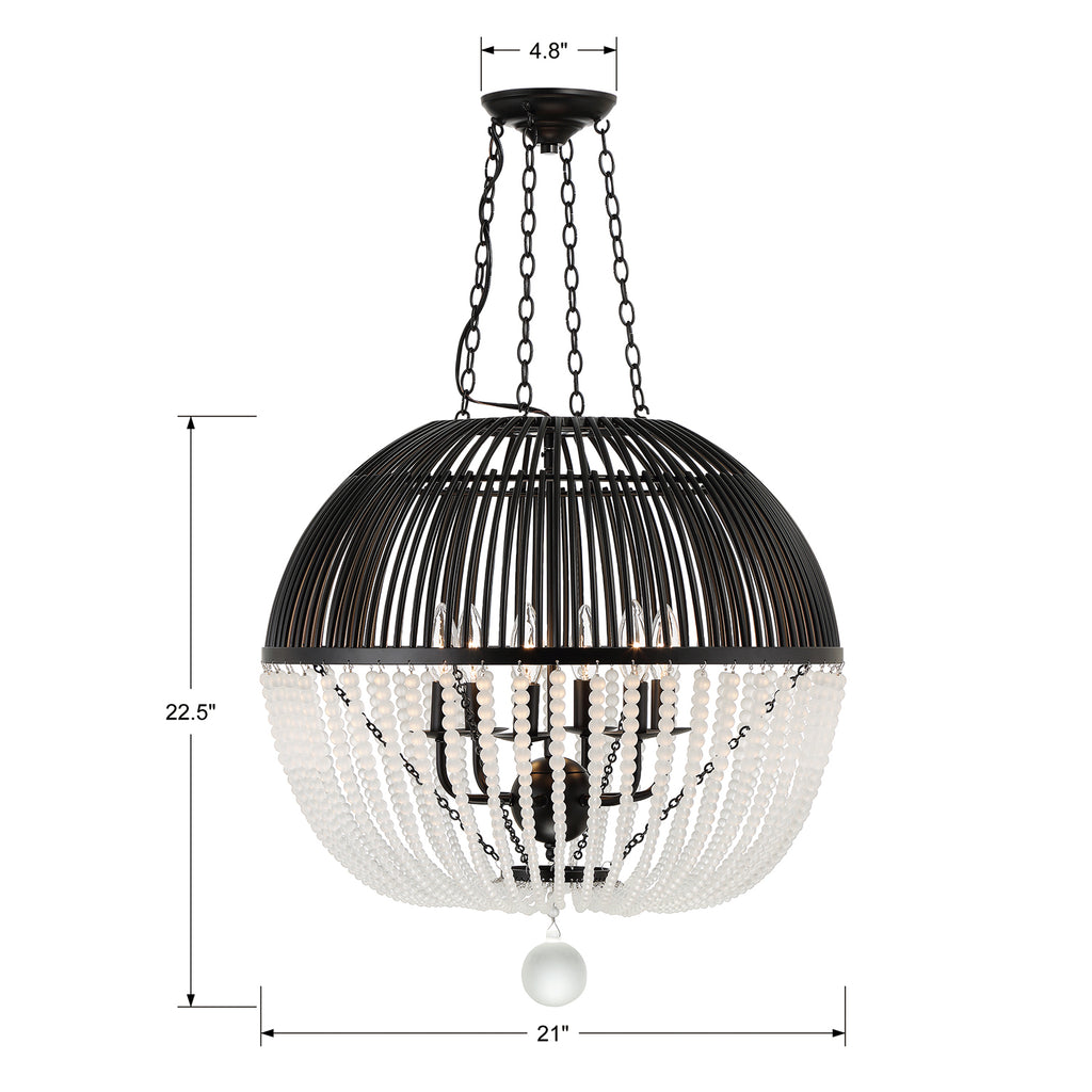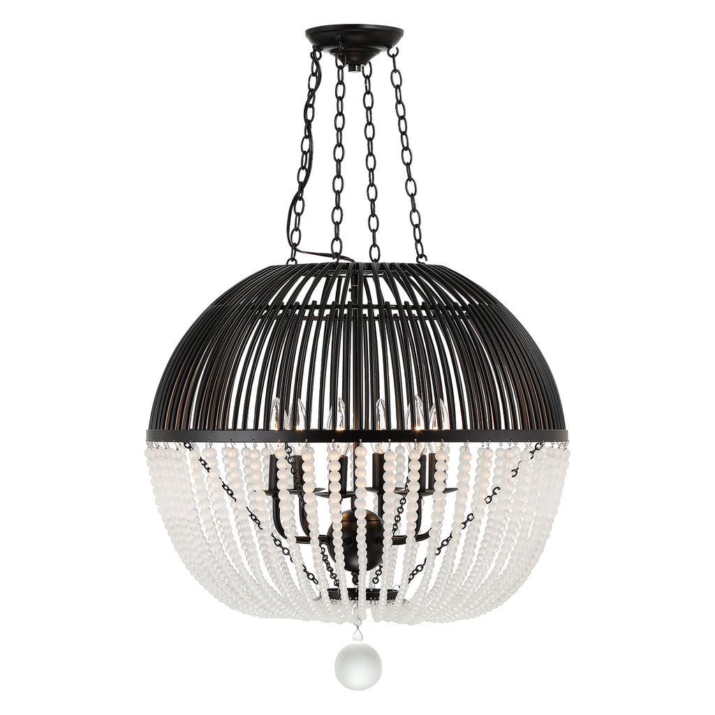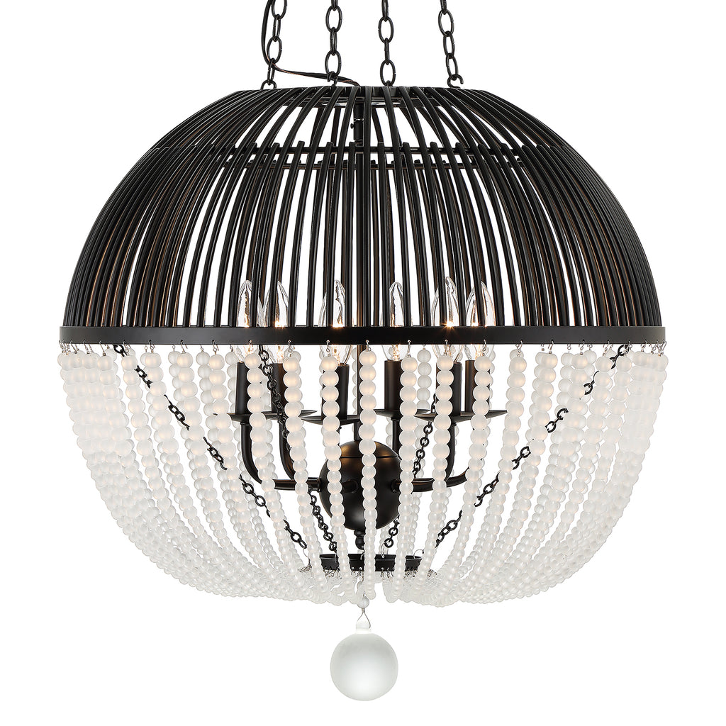 Crystorama is known for its standout lighting, which is exceptional in quality and design. From traditional all-crystal designs to transitional lighting collections, Crystorama offers styles that will match any décor and are always in fashion. Candelabra lights shine through the open metal caged design of the Duval hand painted fixture. The rhythmic frame features hundreds of frosted round glass beads cascading in strands inward to where a single metal ball hangs. This statement piece is perfect to add grandeur to a dining room, hallway or bedroom.
