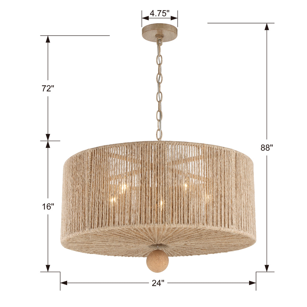 Crystorama is known for its standout lighting, which is exceptional in quality and design. From traditional all-crystal designs to transitional lighting collections, Crystorama offers styles that will match any décor and are always in fashion. Enjoy a relaxed and casual atmosphere, with the subtle beauty of eco-style lighting. Natural jute is wrapped around Jessa's metal frame and casts a filtered light creating a beautiful soft glow. The earth color tone embodies a laid-back style that is the epitome of boho-chic.