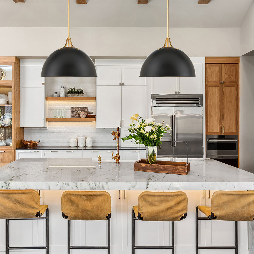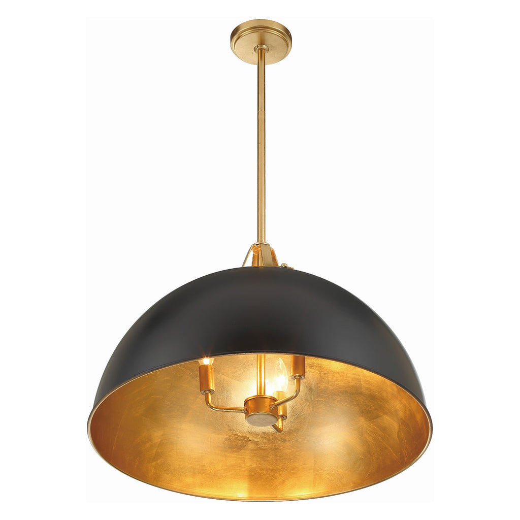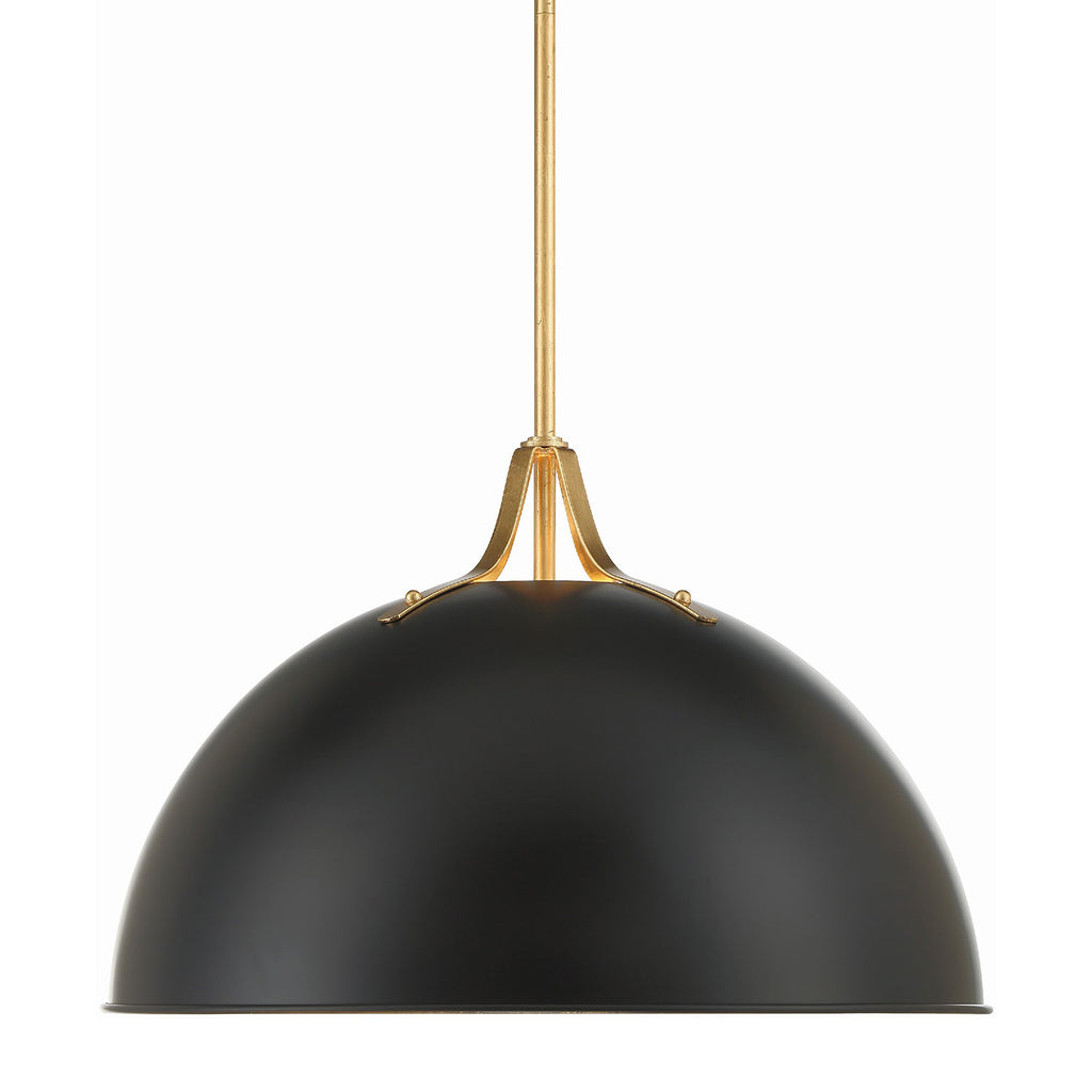 Crystorama is known for its standout lighting, which is exceptional in quality and design. From traditional all-crystal designs to transitional lighting collections, Crystorama offers styles that will match any décor and are always in fashion. A large dome metal shade presents a clean and streamlined silhouette for our Soto collection. This sculptural one-light or three-light pendant is available in Matte Black with contrasting Antique Gold or Matte White. This industrial meets modern farmhouse design shines direct light downwards into your space, making it a perfect choice when hung over a breakfast nook or in pairs over a kitchen island. Soto collection features a versatile farmhouse / rustic design. A combination of classic, elegant, and casual style, these design elements create a comfortable and inviting space. Black metal dome pendant with gold accents. Matte Black non glossy sheen combined with Antique Gold's eye catching brass create a dramatic and timeless effect. This versatile combination can work with almost any décor style.