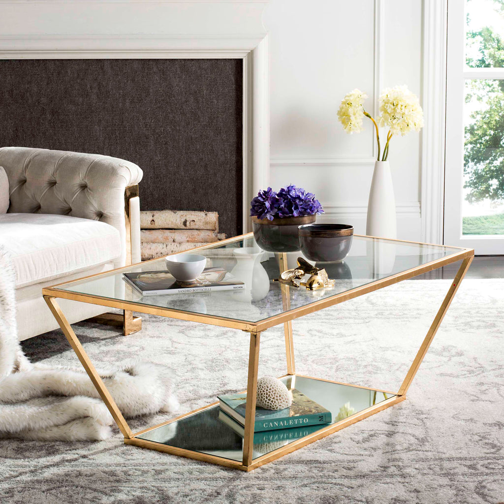 Designed to complement fine antiques or an acquisition from a favorite gallery, this contemporary Cumberland coffee table is a tasteful addition to any interior. An instant classic, its bold geometric form adorned in gold leaf creates an aura of sophisticated warmth.