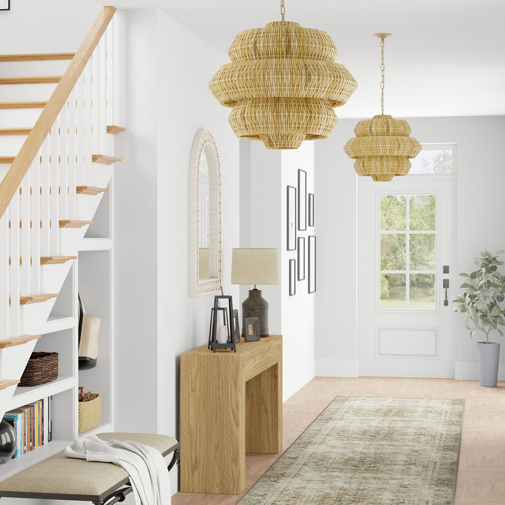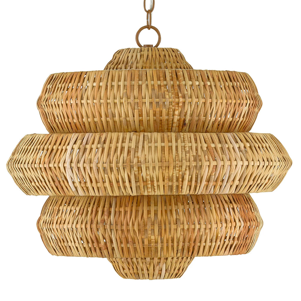 Painstakingly woven by artisans who use traditional techniques, the Currey & Company Antibes Chandelier is a marriage of artistry and high-quality construction. Natural rattan forms the body of this geometric chandelier supported by a wrought iron frame in a khaki finish.