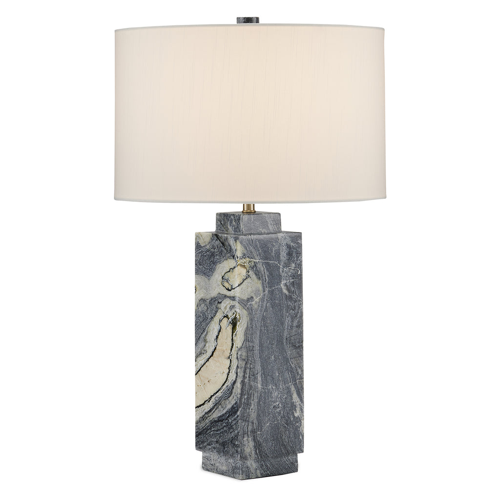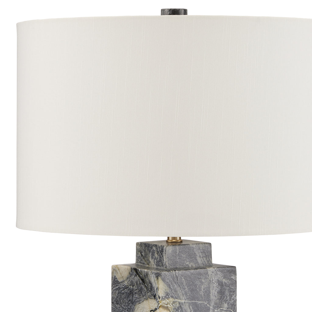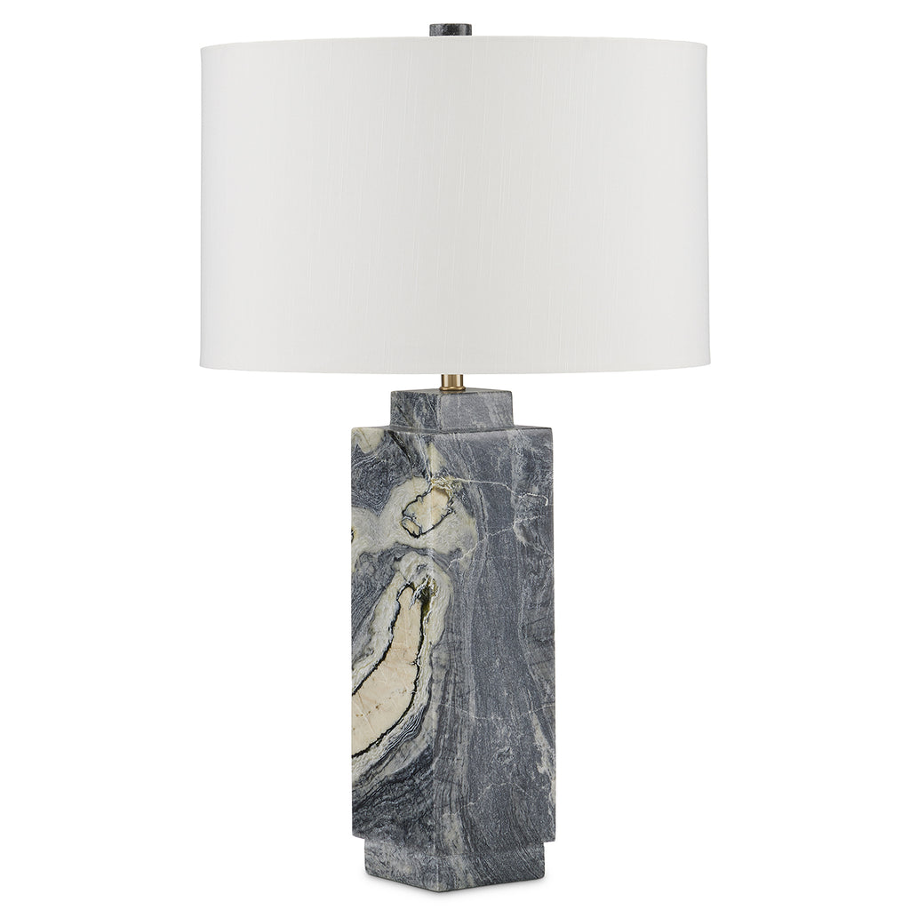 The Ashlar Jade Marble Table Lamp showcases one of mother nature's works of art. Made of Floral Jade Marble, the gray lamp was designed by Ian Thornton, who kept the shape simple to allow the material to be the star of the show. "I love how the material looks," Ian said. "It's new to the lineup, which makes it even more exciting." The character in the stone from piece to piece will vary, which makes each lamp unique. The Ashlar is topped with an off-white shantung shade and the hardware is in a brass finish.