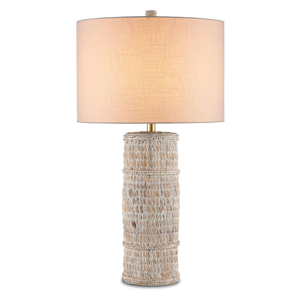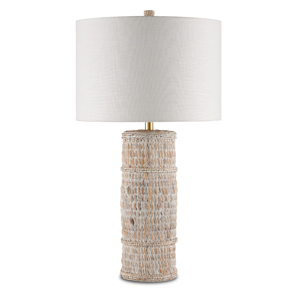 The Currey & Co Azores White Table Lamp has a body covered in woven water hyacinth that has a light white wash over the natural material. This is one of our sustainably inspired offerings because the plant grows naturally in Vietnam in the streams, and people harvest it to make baskets. Because it grows wild and voraciously, removing the plants keeps the streams from clogging. Design details of note are how the water hyacinth is woven in different directions and the matching finial. We also offer this lamp in natural.