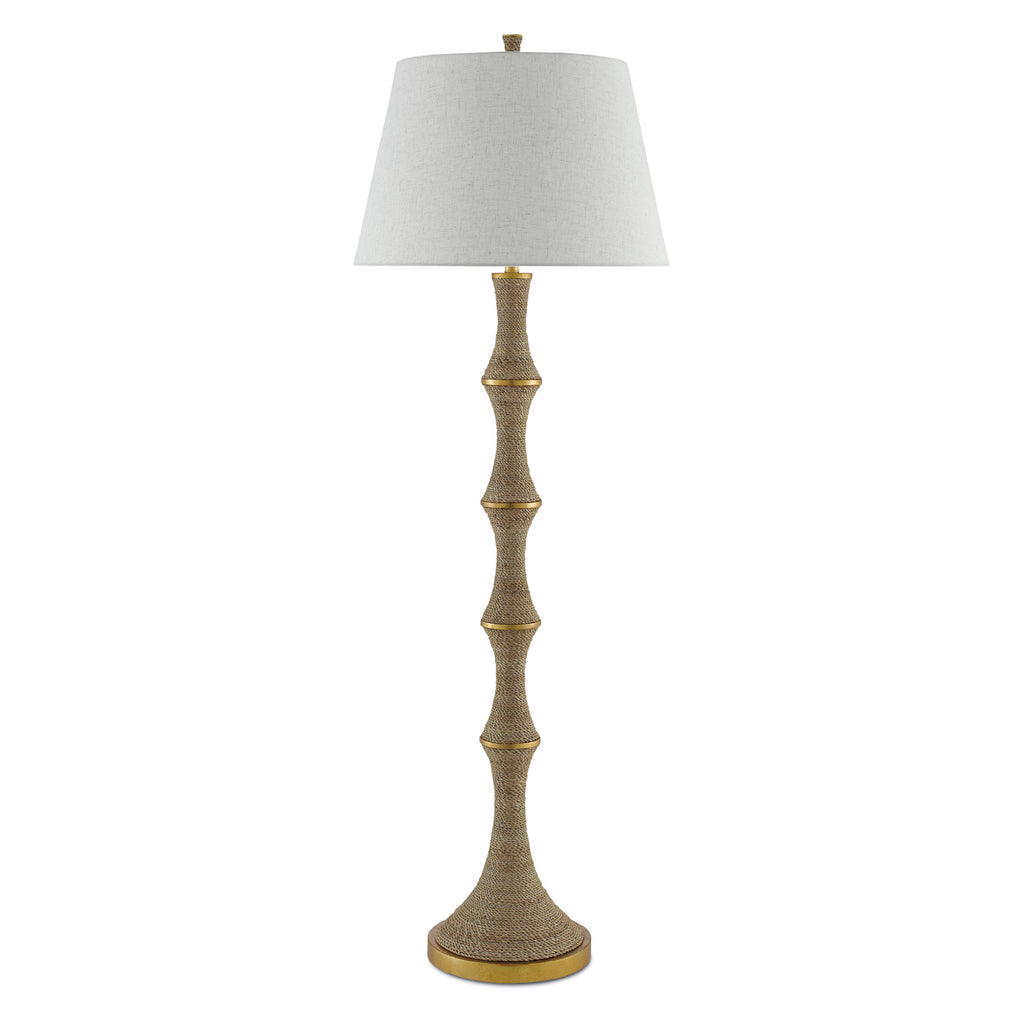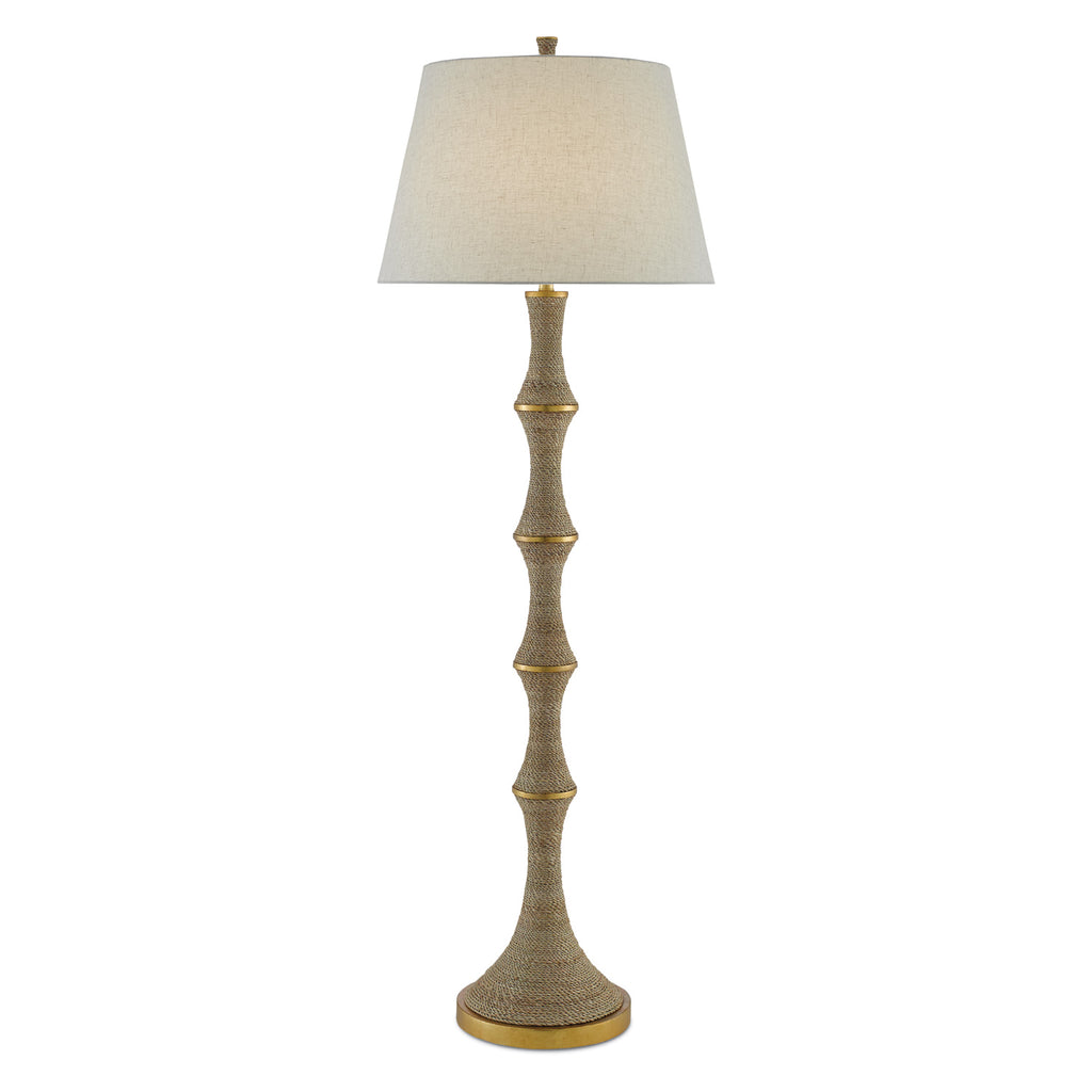 The Bourgeon Floor Lamp would have been fascinating had its fluted stem simply been wrapped in abaca rope but we’ve ornamented the swells in the stem with a dark contemporary gold leaf finish that gleams when light strikes it. We thought this would dress up the nautically inspired composition, which we’ve topped with a beige poplin cotton shade. This lovely lamp is an ideal luminary for a beachside condo, a seaside cottage or a lakefront home.