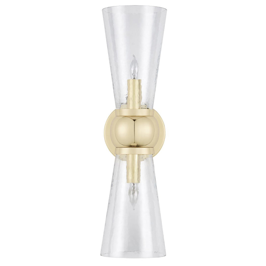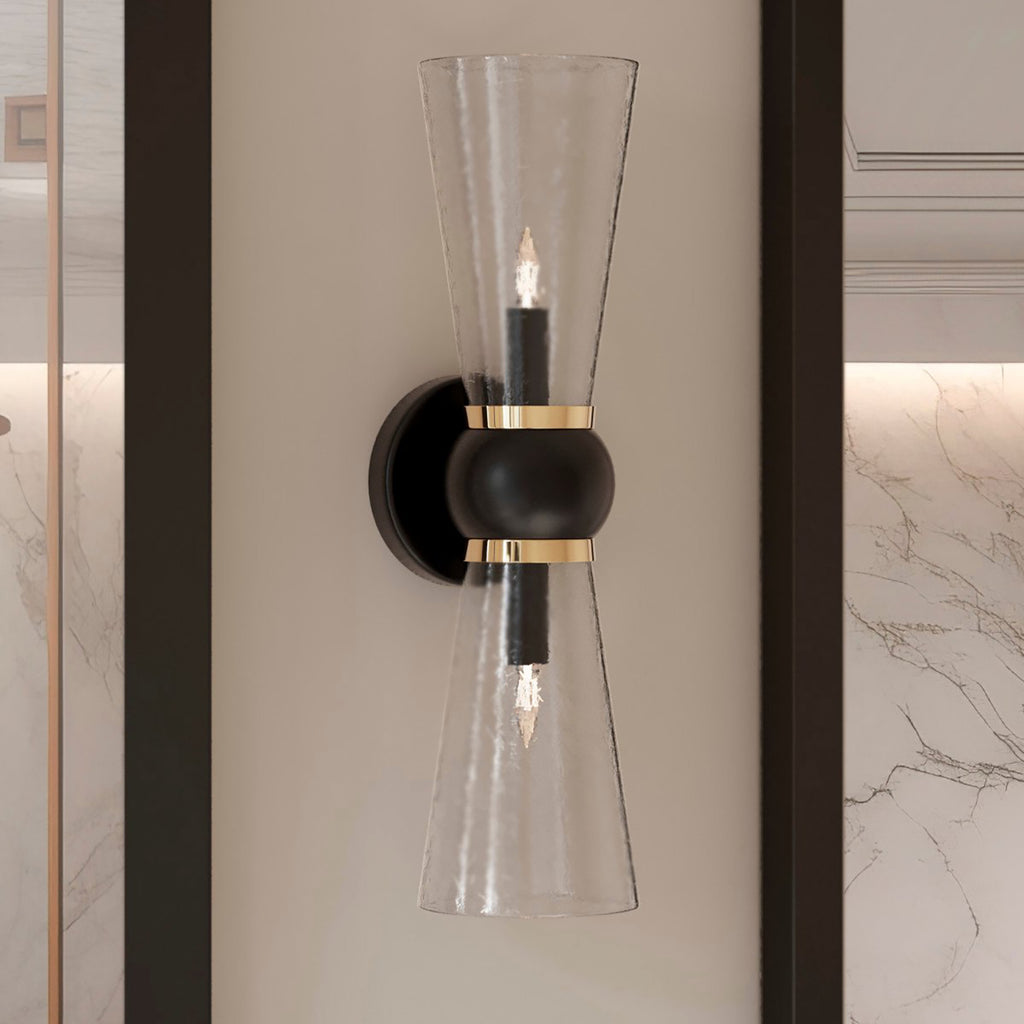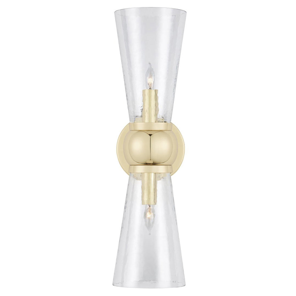The conical glass cones on the Currey & Co Byford Bath Wall Sconce create a soft, diffused glow, perfect for bringing a cozy ambience to any bathroom. The bath sconce is made of polished brass, and the glass diffusers have a hammered texture to them. These are stylish sconces for lighting up a bathroom vanity or a powder room.