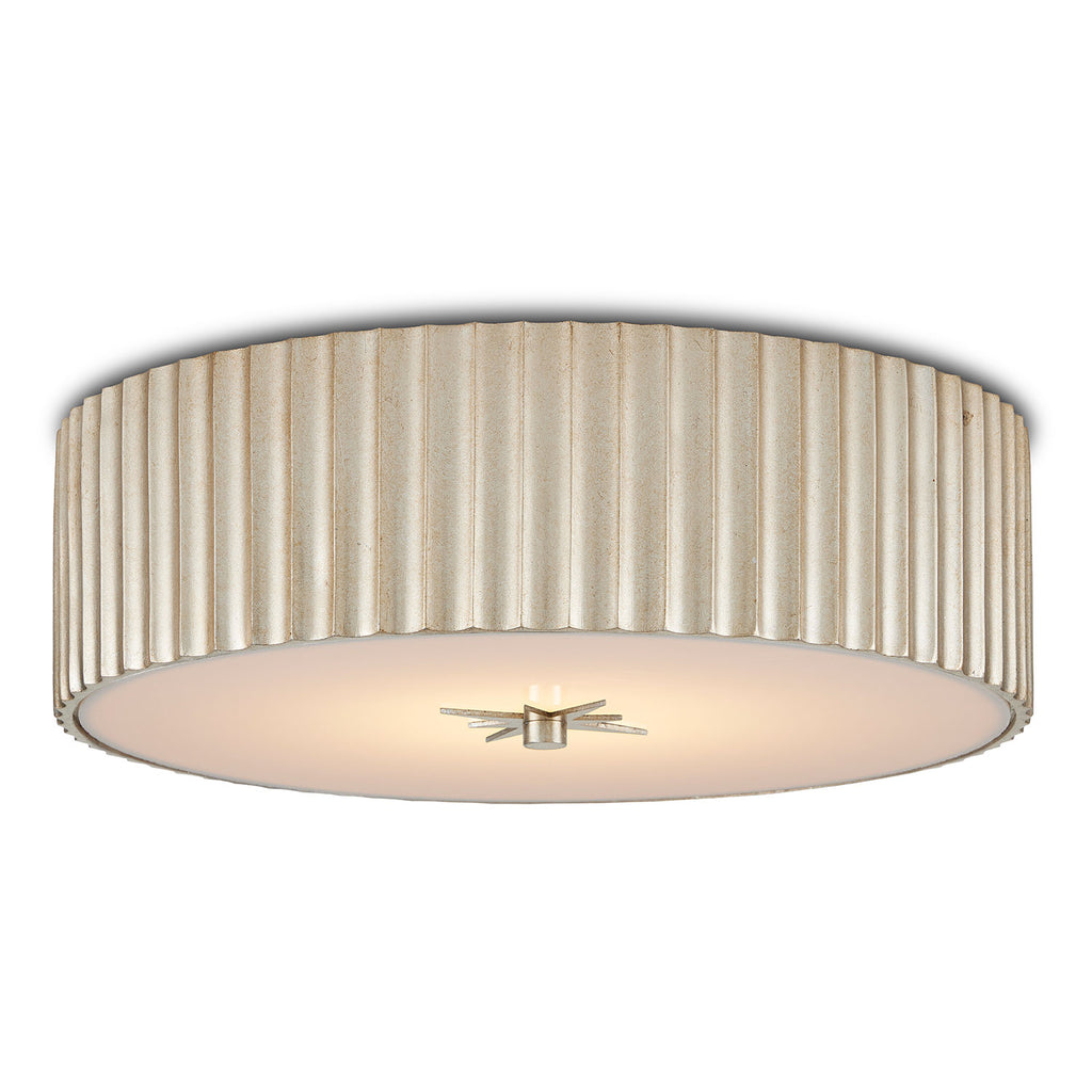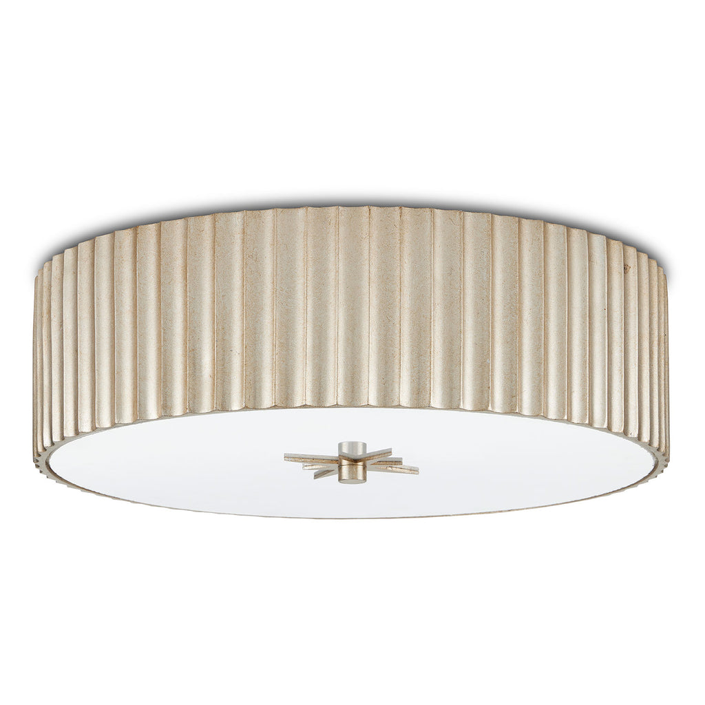The Currey & Co Caravel Flush Mount is a classic flush-mount design made of composite with a silver leaf finish. We’ve fitted the Caravel with a frosted glass diffuser, which will soften the light wafting from the integrated LED bulbs. The delineated shape of the profile is a sophisticated design detail.