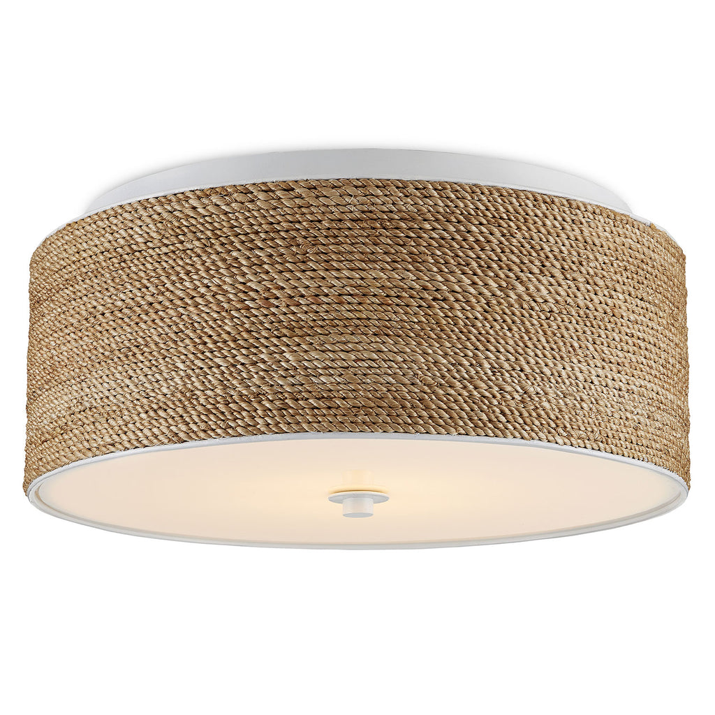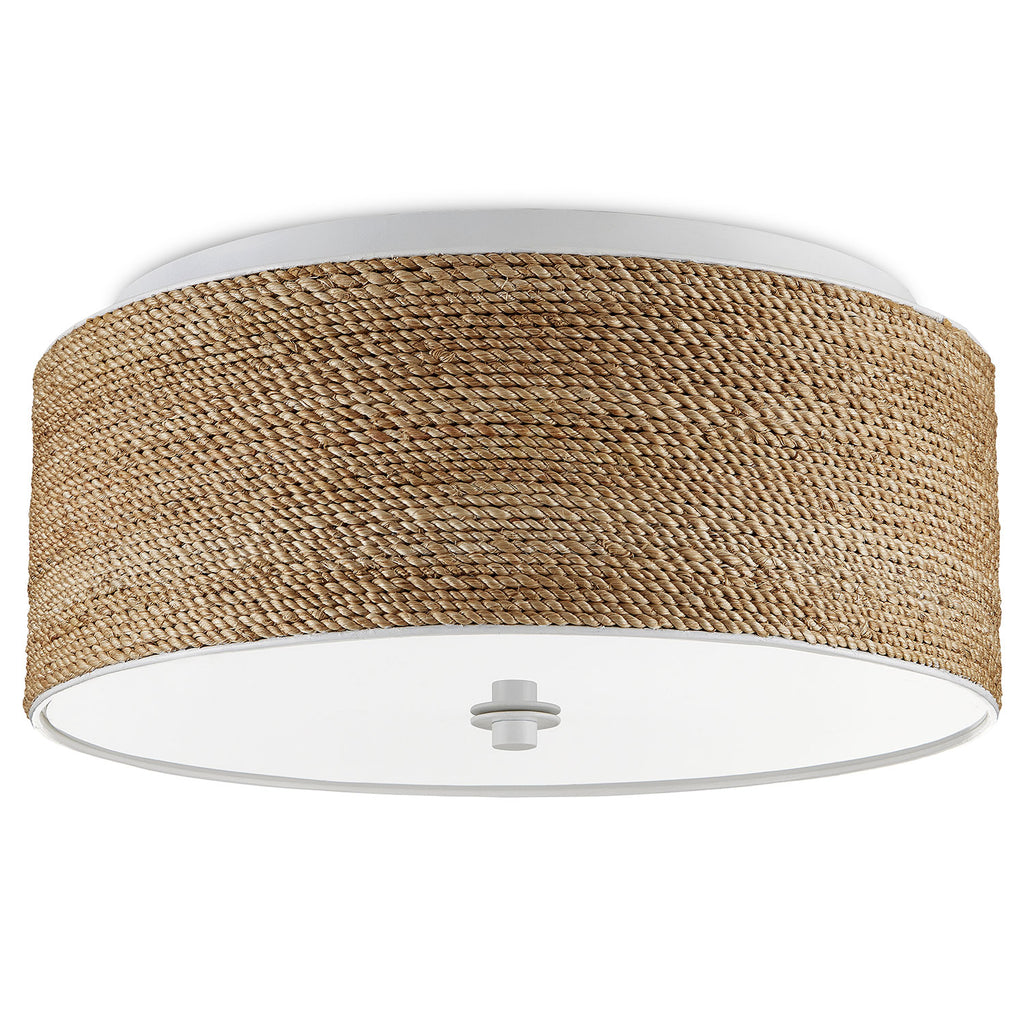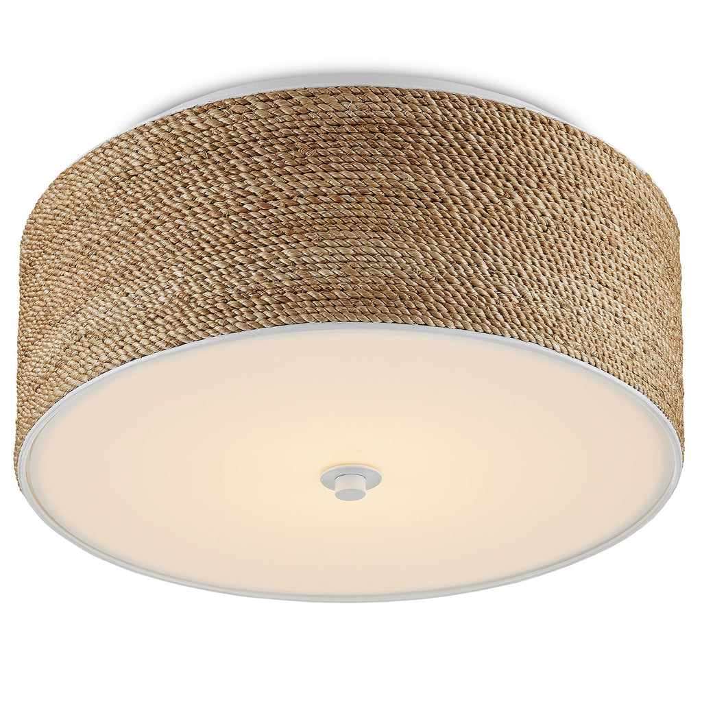 Abaca rope is densely woven around the circumference of the Currey & Co Coulton Flush Ceiling Mount. Clarence Mallari designed the rope flush mount to be luminous. Choices that enhance the glow include the sugar white finish and the acrylic diffuser. This fixture illustrates how painstaking it is to weave natural fibers so consistently and evenly to create the textural rows that bring it warmth.