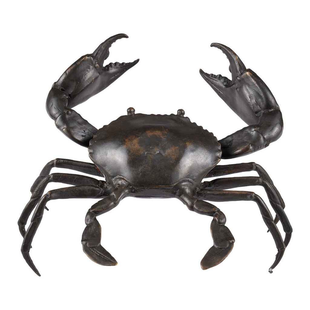 The attention to detail involved in creating such a lifelike crustacean makes the Currey & Co Crab Bronze a playful decorative accessory and a true conversation starter. Once the bronze sculpture is loosened from its mold, a dark brown patina is applied by artisans to give its surface the textural details that make it look aged.