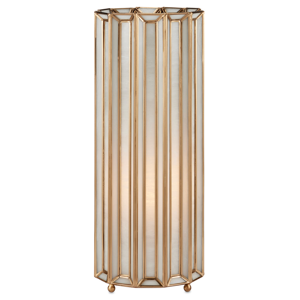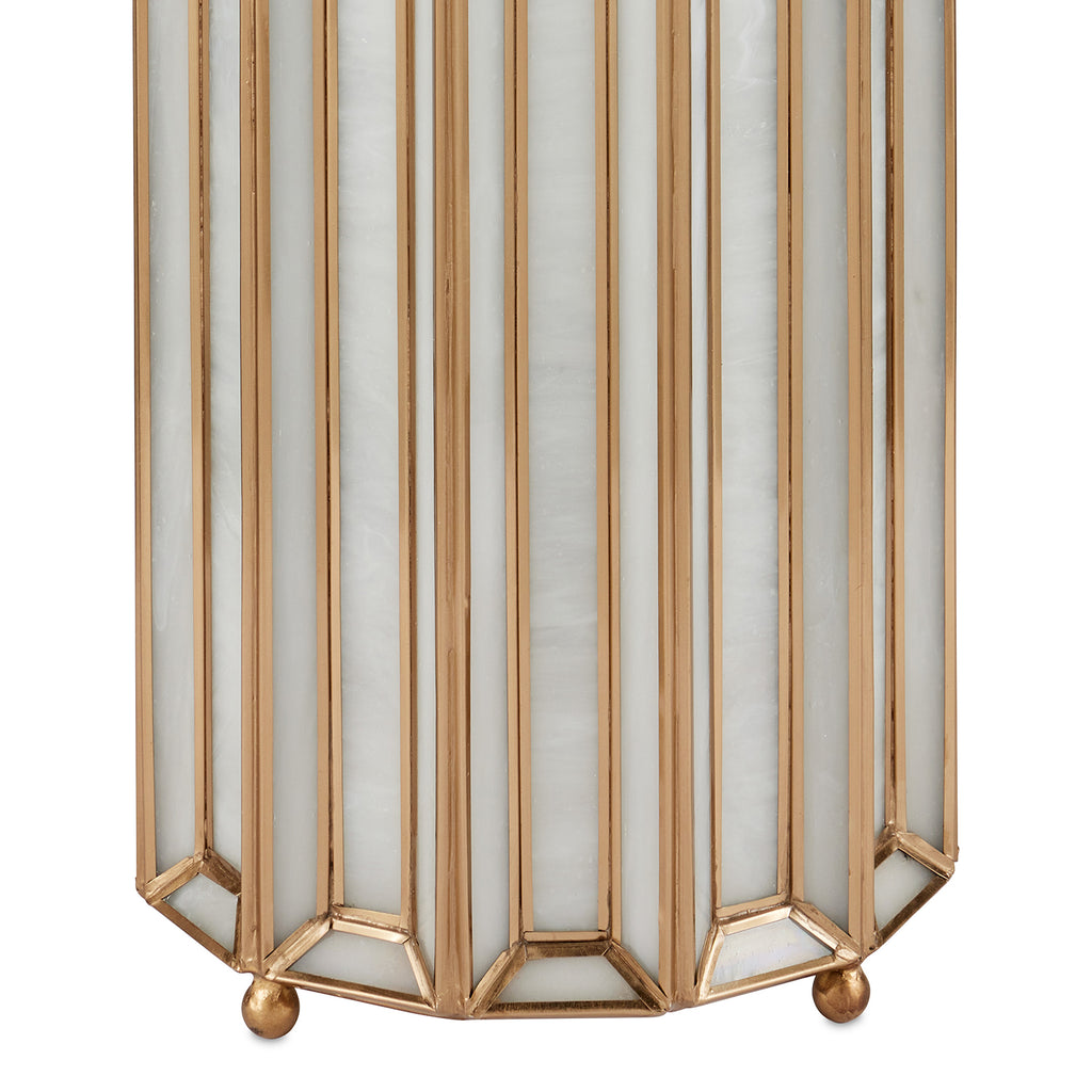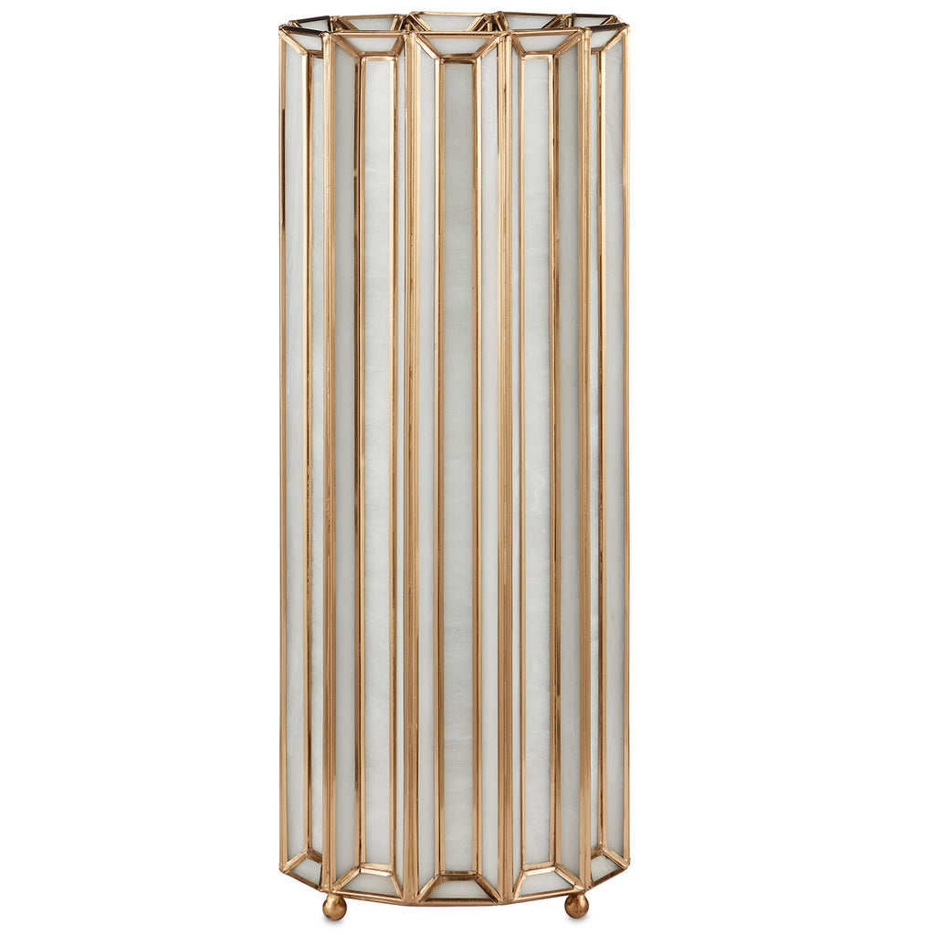When a soft glow is desired, milk glass is one of the best materials to diffuse illumination. Our Currey & Co Daze Uplight Table Lamp is made of articulated panels of white milk glass that are joined together by ribs of metal in an antique brass finish. This white table lamp with its contemporary profile provides a soft, luminous glow.