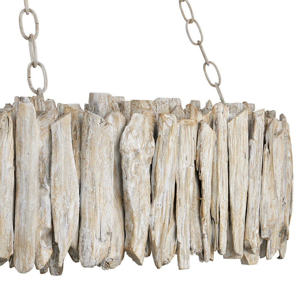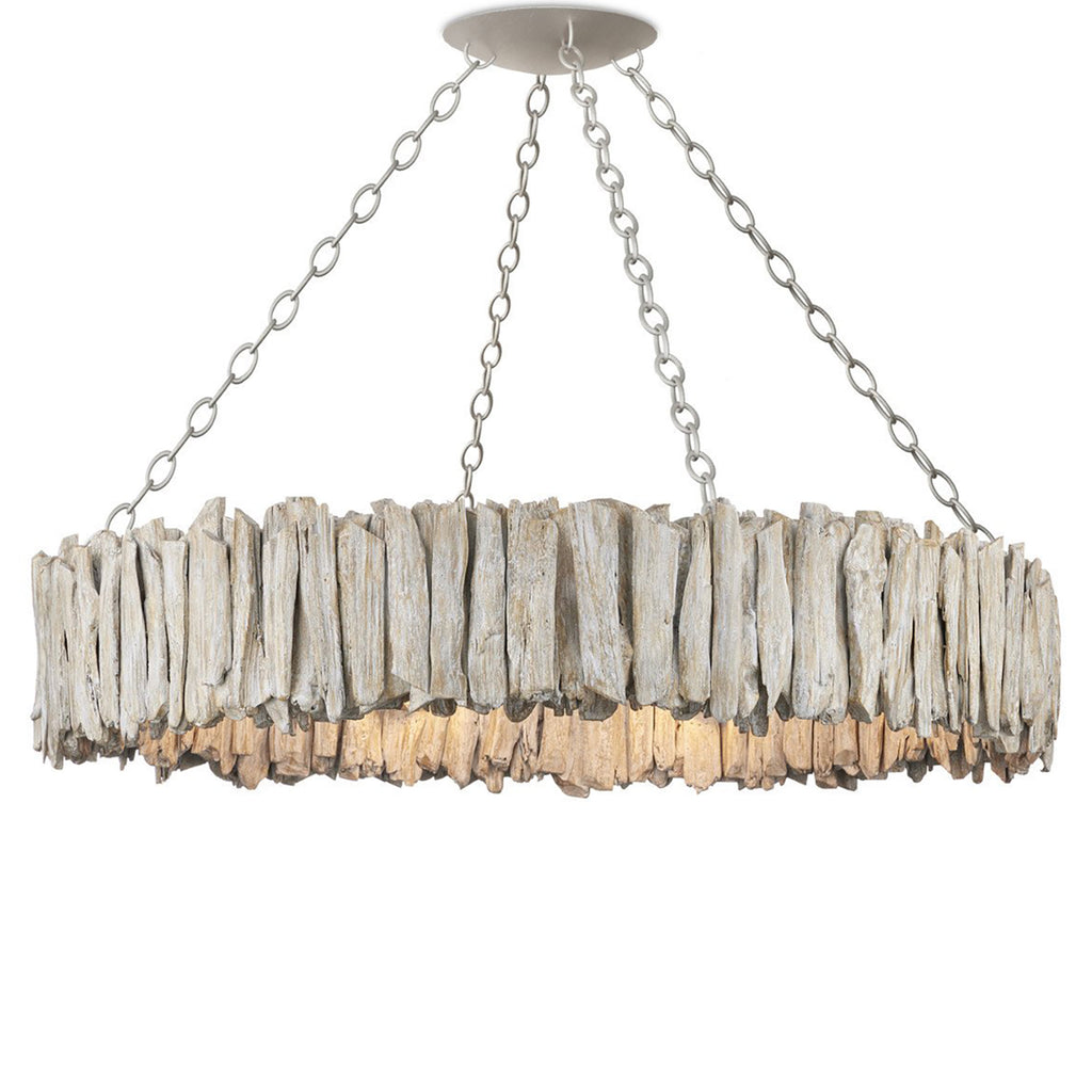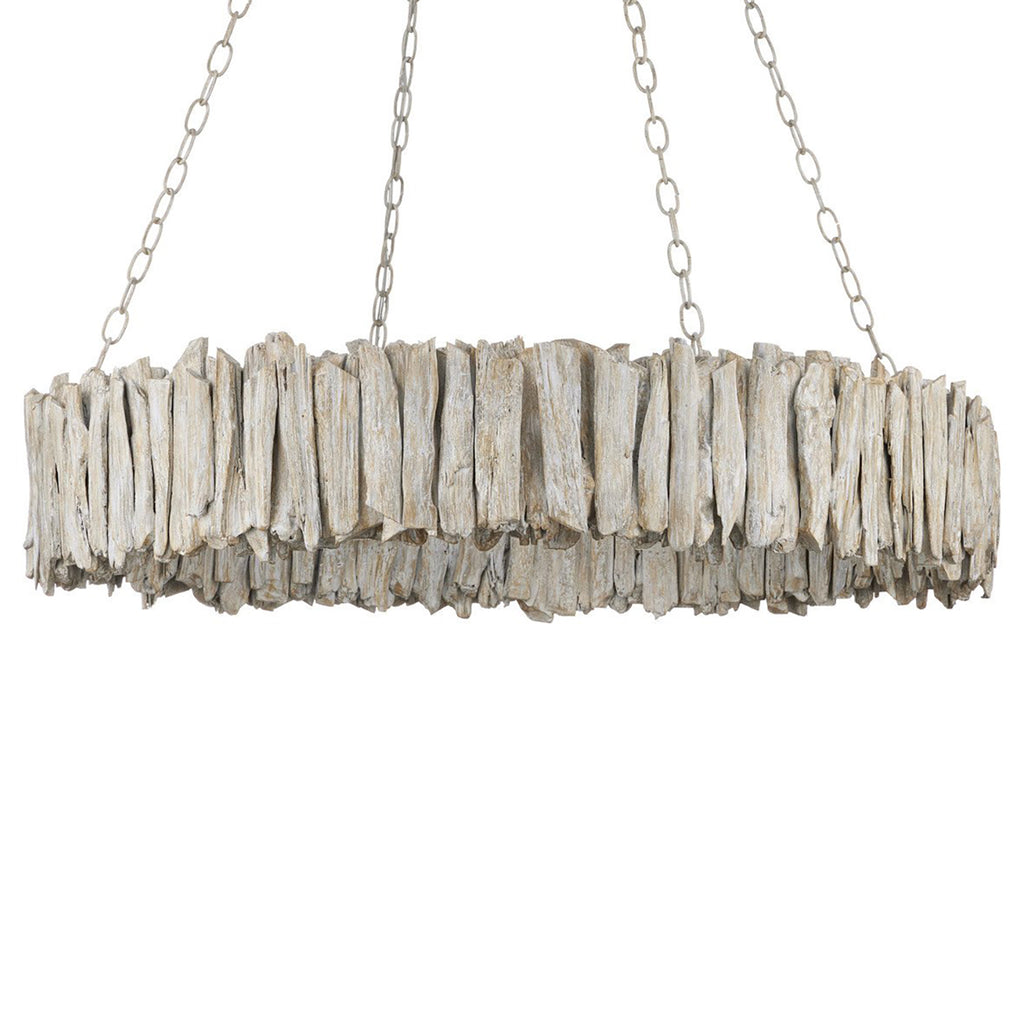 The Currey & Co Driftwood Whitewash Ring Chandelier is crafted from hand-selected pieces of natural driftwood. The wrought iron frame and the wood pieces are in a whitewashed driftwood finish that makes this a seamless tone-on-tone composition. The Driftwood is a perfect choice for any home with a coastal or lakeside aesthetic.