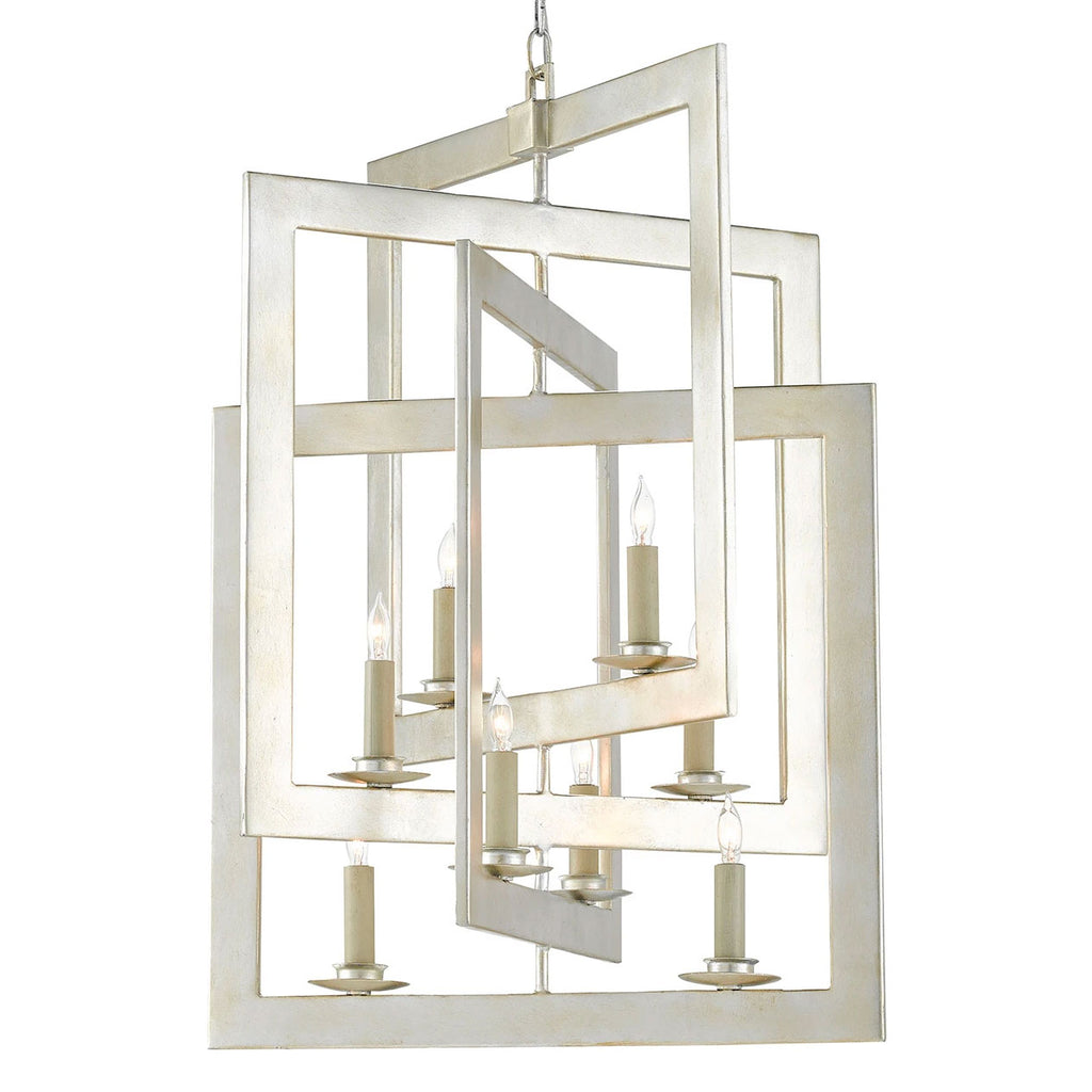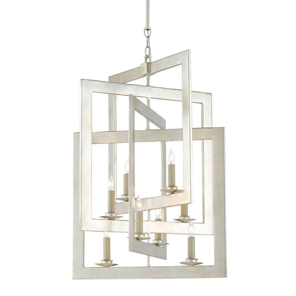 It was Aristotle who said the whole is more than the sum of its parts, which is oh so true with the Currey & Company Middleton Silver Small Chandelier. If its interlocking squares created by wrought-iron bands were fashioned any other way, it wouldn’t be the smartly designed light fixture it is. The frame of this eight-light chandelier perfects the illusion of diminishing perspective, its contemporary silver leaf finish so fitting it’s a philosophical given. We also offer this silver pendant in a number of different sizes and shapes, and in several other finishes.