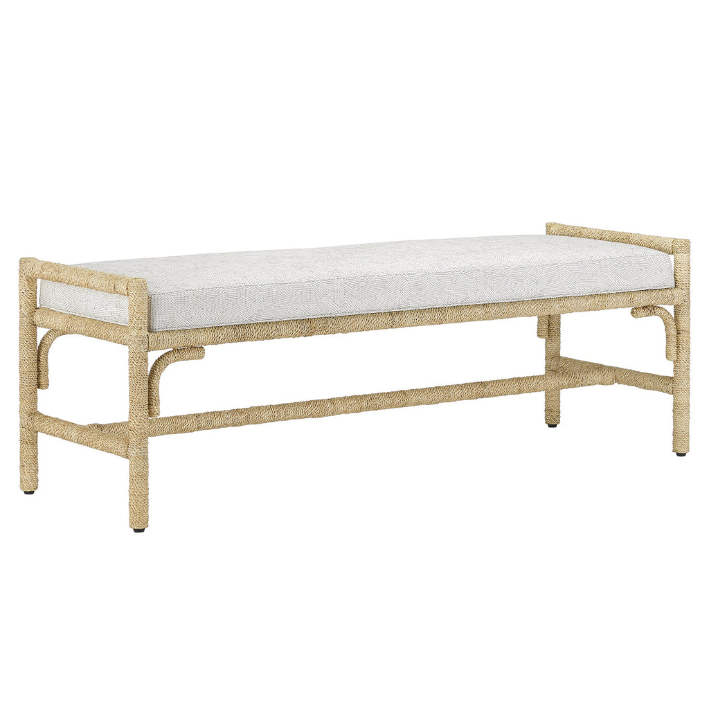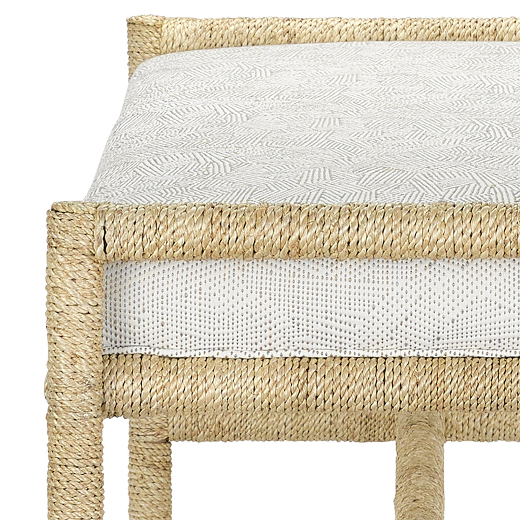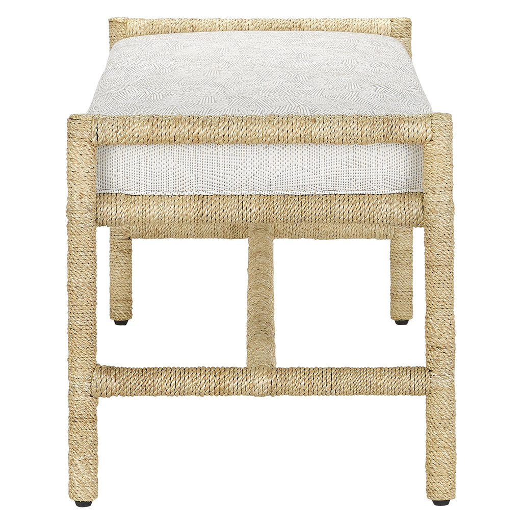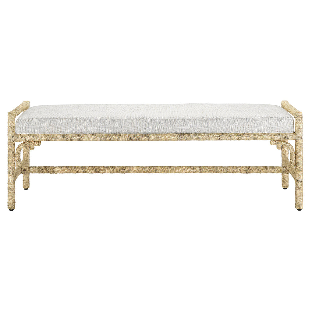 With the earthy feel of rattan and wicker but with a much heavier dose of personality, the Currey & Company Olisa Pearl Bench is a wrap star! Made of wrought iron that is covered in braided Abaca rope, this bench would make a noteworthy statement in an oceanfront retreat or in a lovely lakeside residence.