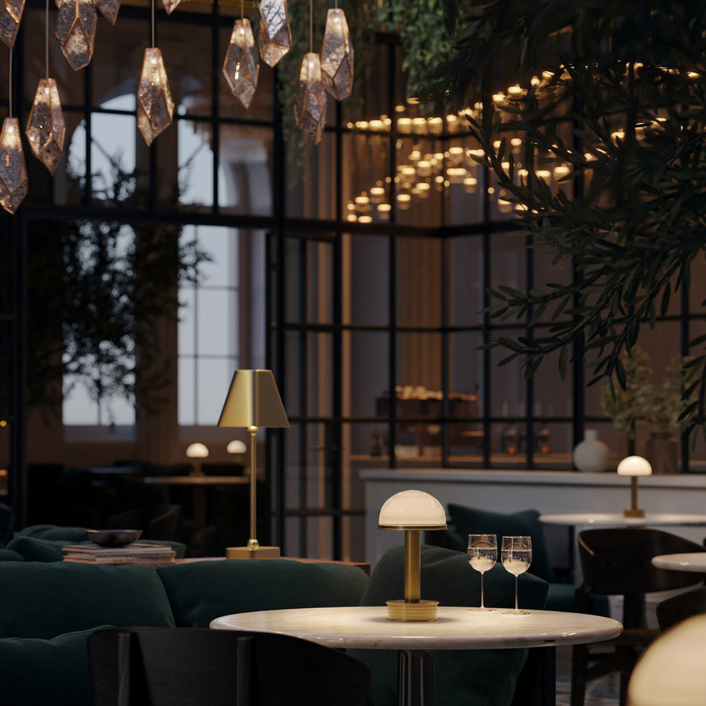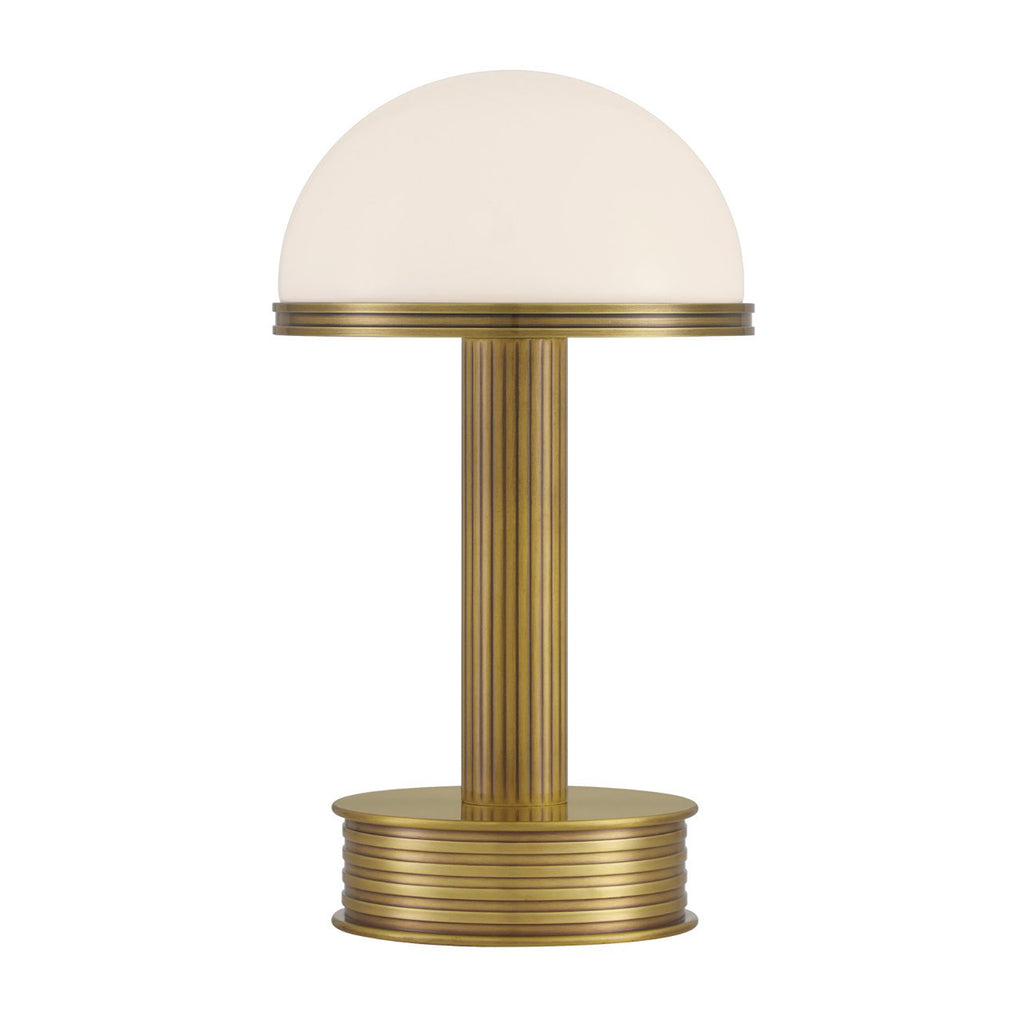 The Currey & Co Promenade Brass Cordless Table Lamp will wander with you wherever you need an ambient light source. At just 10 inches high, the gold lamp glows in a polished brass finish with a glossy white glass cap. The on and off button is on the side of the base, as is the battery-life indication light that alerts when it is time to recharge. This little lamp is a stylish choice when the ultimate freedom of a cordless lamp is desired.