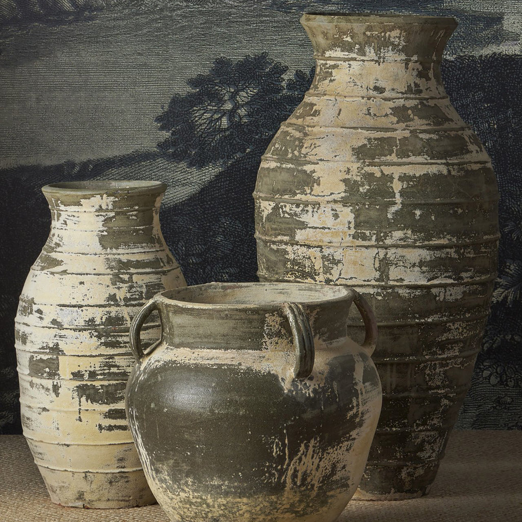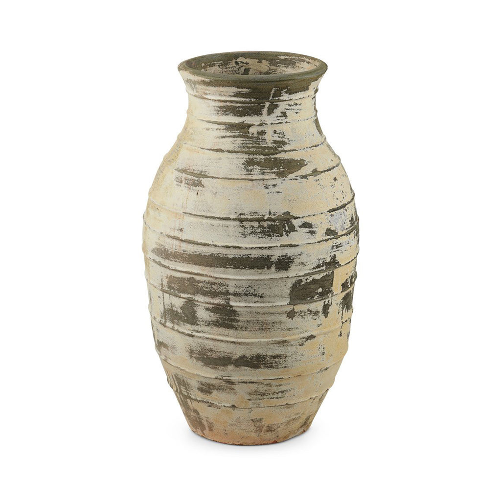 Bring the garden indoors (or enhance outdoor spaces) with the Currey & Co Ragusa Large Antique White Urn and its strong Mediterranean vibe. Inspired by classic shapes that have been staples in Italian gardens for centuries, the aged white planter has pitting in its terracotta surface to create the ruse that it, too, has been tucked away in the landscape for ages.