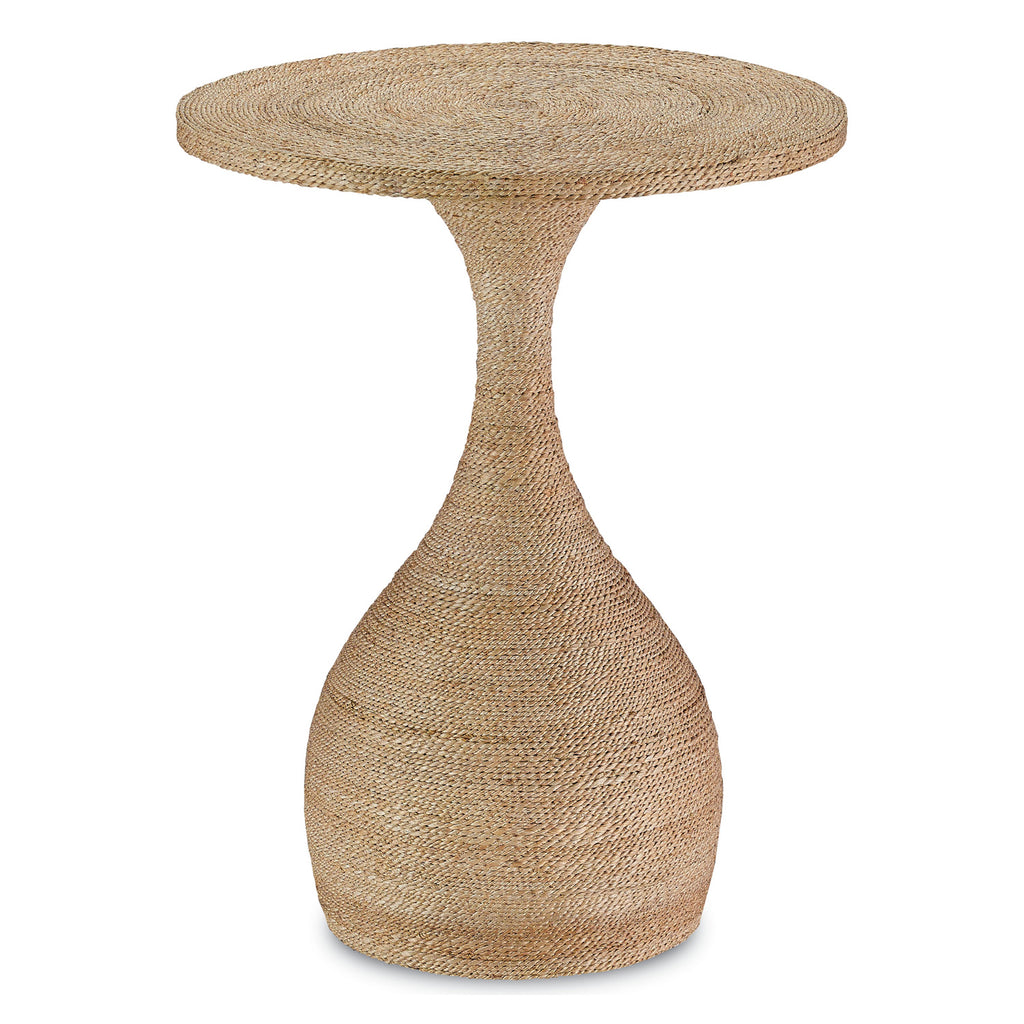 Cleverly resembling an inverted wine glass, the engaging hourglass shaped base of the Simo Accent Table will be your best friend during happy hour! The design is made all the more easy-breezy given it is covered in natural Abaca rope. This great little number will be a terrific accompaniment to all of the times you and your friends or family are inspired to shout Cheers!