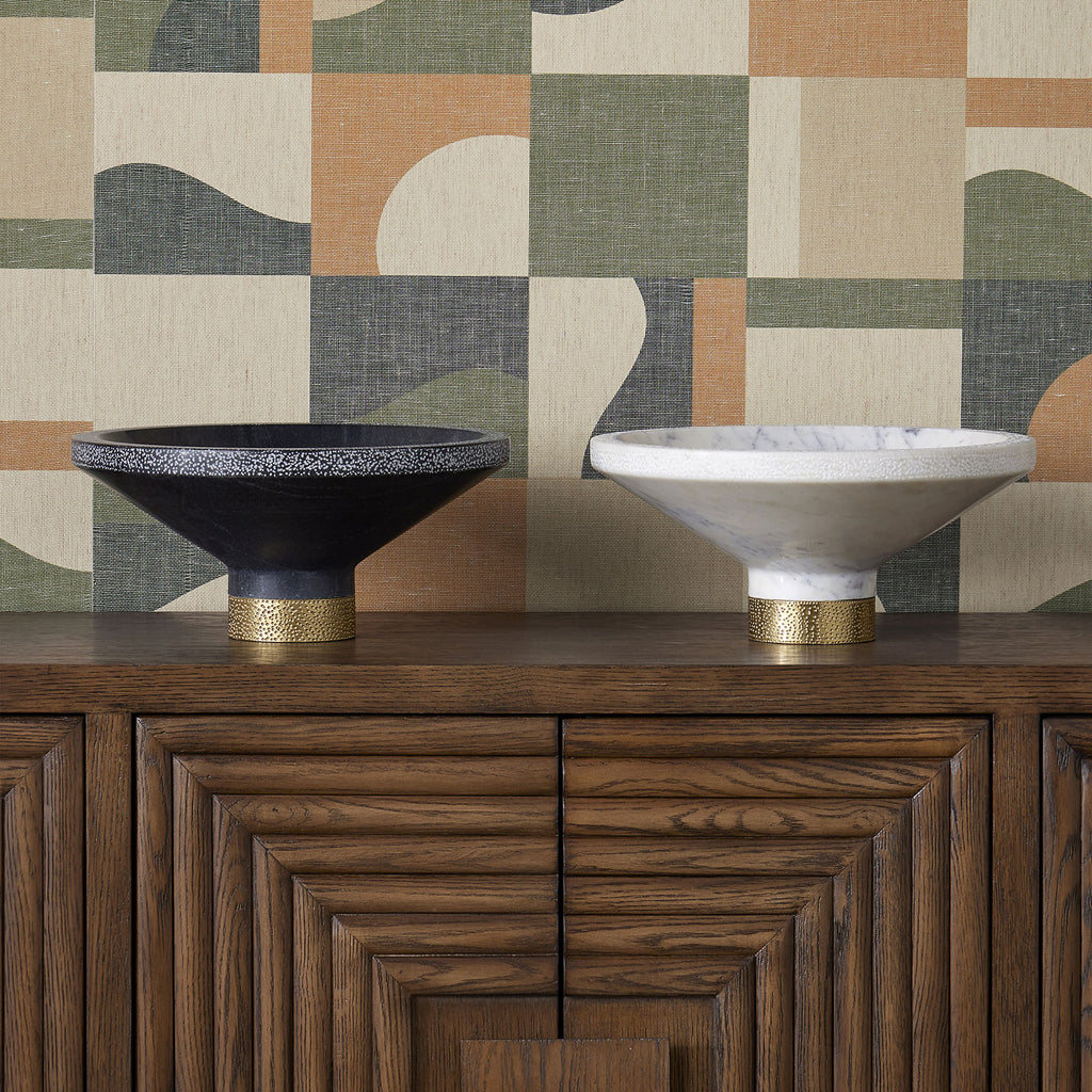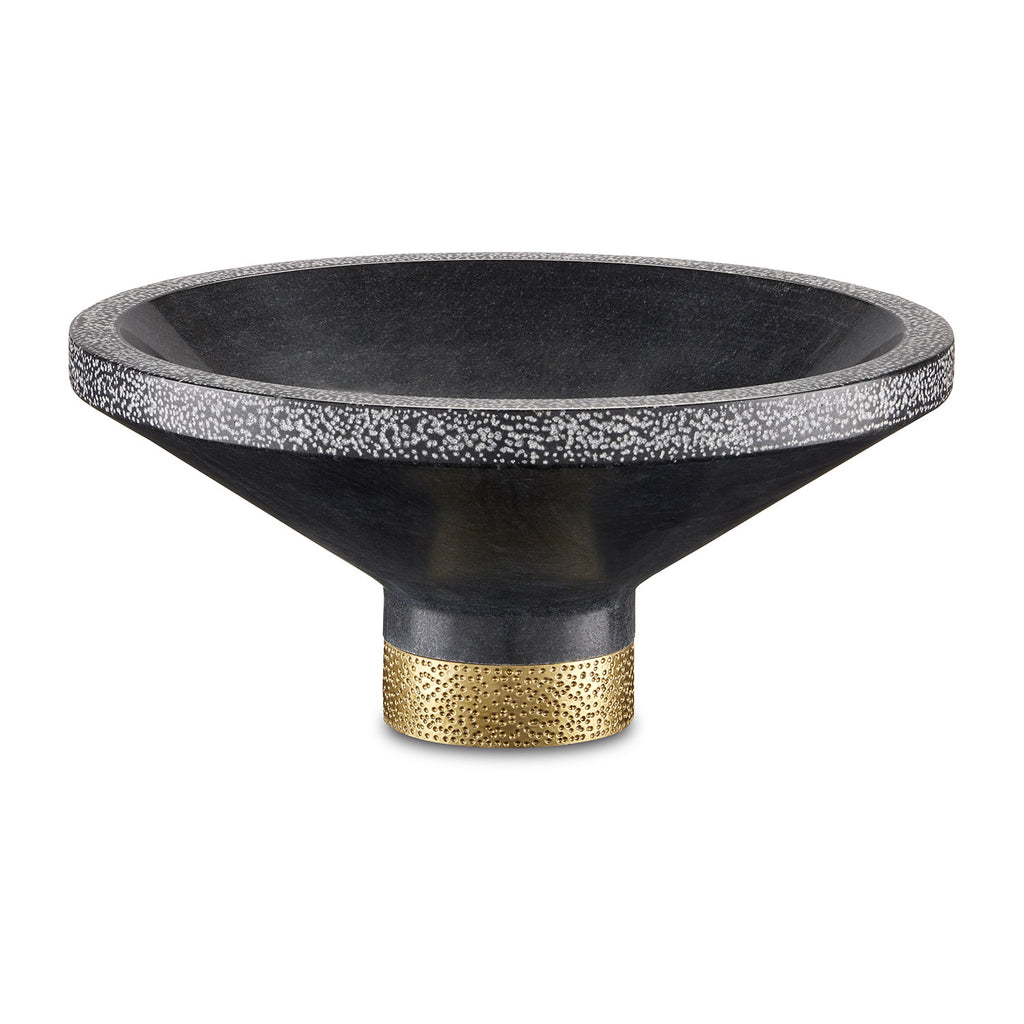 The Currey & Co Vincent White Marble Bowl is made of solid marble with a brass-claded base and chiseled details on the edges, which bring it added texture. The base also has a stippled surface achieved when artisans chisel the surfaces. Because this white decorative bowl is made of a natural material, slight variations will exist from piece to piece.