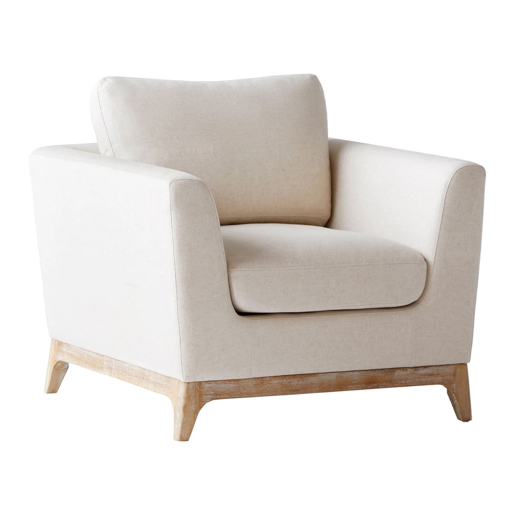 Add distinctive, eclectic design to a home or office with functional arm chairs, club chairs, and occasional chairs from Cyan Design. With a variety of styles and authentically unique shapes, you can create a cozy seating area anywhere you choose. The Cyan Design Chicory Chair is topped with a white linen weave and a weathered oak wood finish. The high-density foam filling, down wrapped cushions, solid wood frame, and S springs provide added comfort and support. Update your style with this modern accent furnishing, perfect for any residential or commercial design plan.