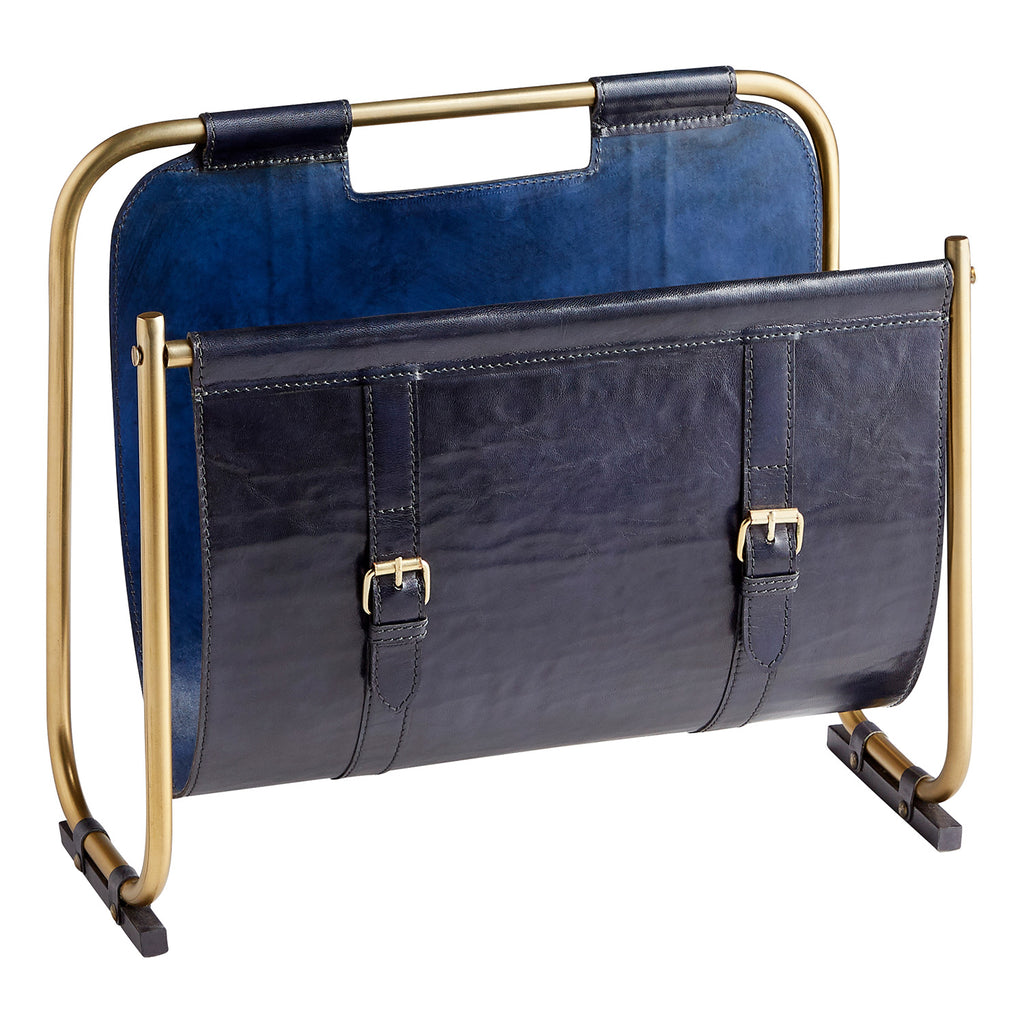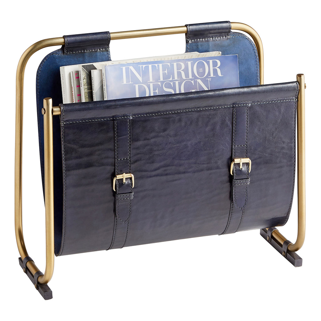 A beautiful way to add elegance to a living room or lobby, the Cyan Design Granville magazine rack is an artful addition to any ensemble. Crafted of iron, wood, and leather, this storage container features exceptional attention to detail, creating a sense of masculine luxury in its combination of dark tones and warm metals. The mix of Midnight Blue and Antique Brass elements are key to creating a stunning transitional or contemporary home accent.