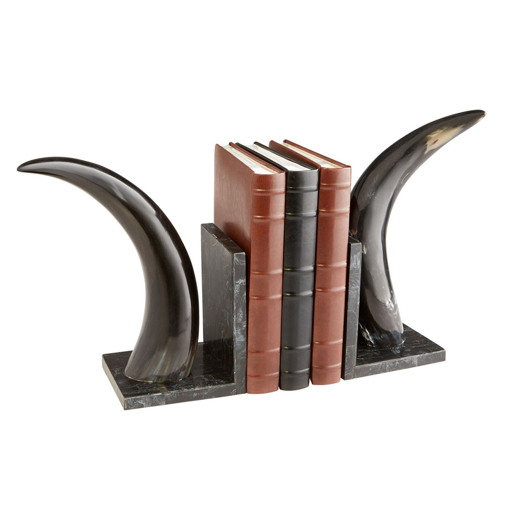 Accent while you organize with bookends from Cyan Design. This versatile yet distinctive shelf décor holds up your books without holding up your style. Create an interesting focal point with these resin and horn bookends. The resin finish adds a modern element to the bone finished horns, giving any bookshelf a smarter edge.