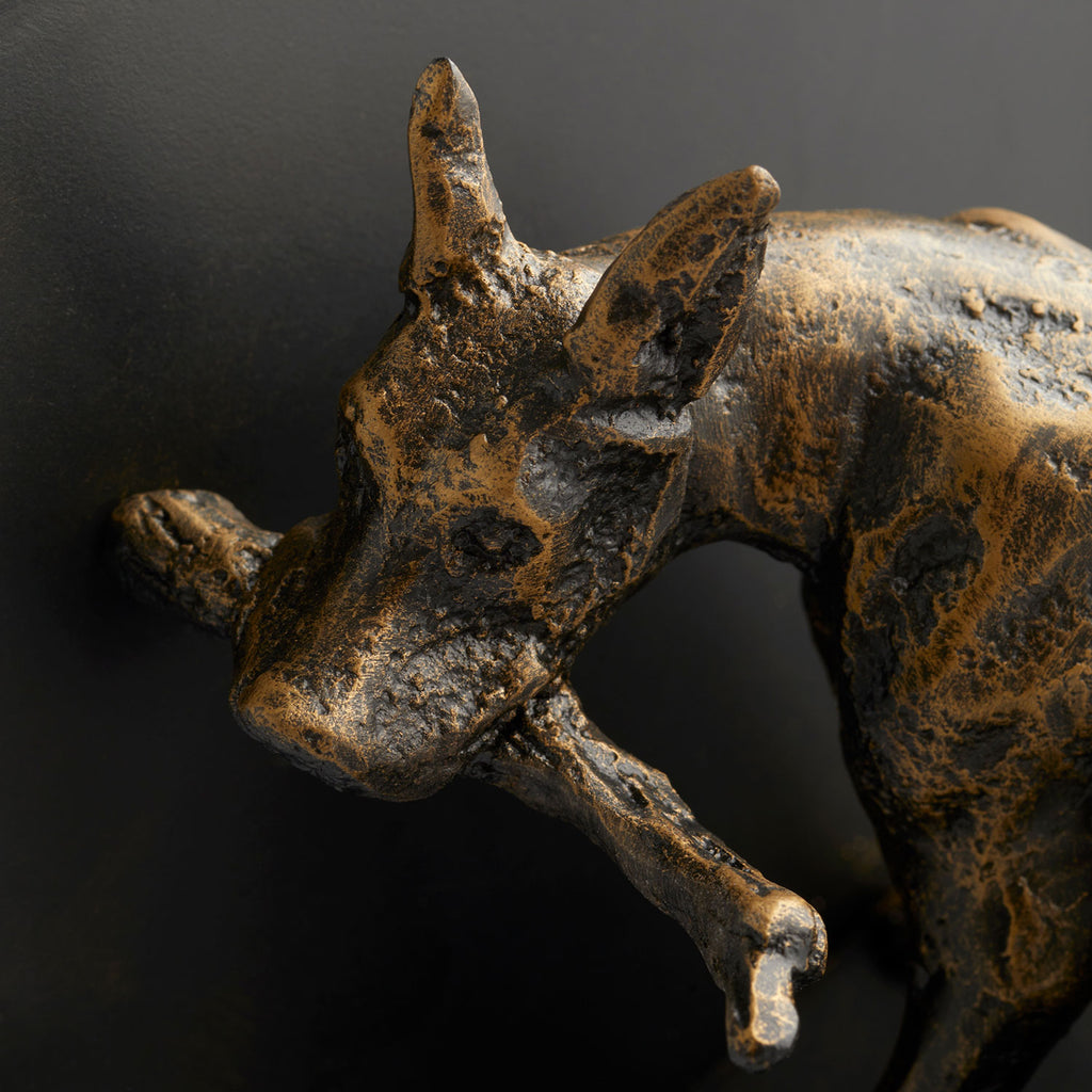 The Cyan Design Marathon bookends are a whimsical depiction of a pair of pups playing tug-of-war. The excitement of dogs at play is captured through sand cast iron with an old world finish. Complete your next reading nook or office design with this imaginative rendering of endless enjoyment. Flank your favorite novels on your reading nook's accent table or upon a bookcase shelf to add an artistic touch.