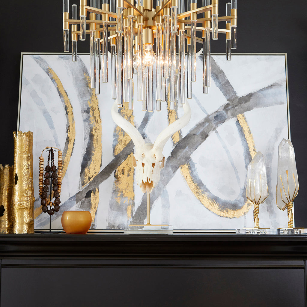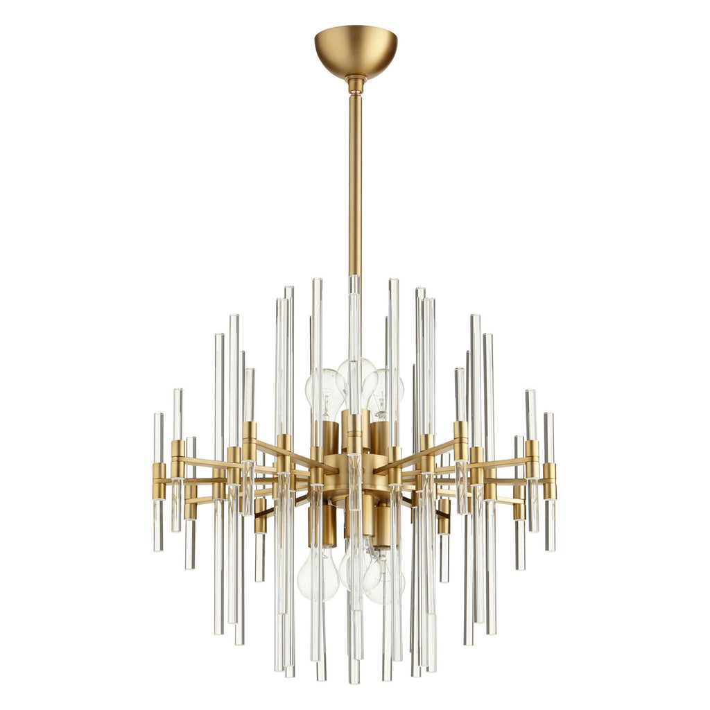 Illuminate a home or office with the eclectic silhouettes of Cyan Design pendants. Perfect for suspending over a kitchen or dining room table for a functional yet warm and welcoming ambience. Delightfully classic and timeless, this six-light glass pendant captures attention and brings style. Linear arrangement of glass rods in gradient sizes creates an eye-catching geometric effect, while its aged brass base provides an ideal complement.